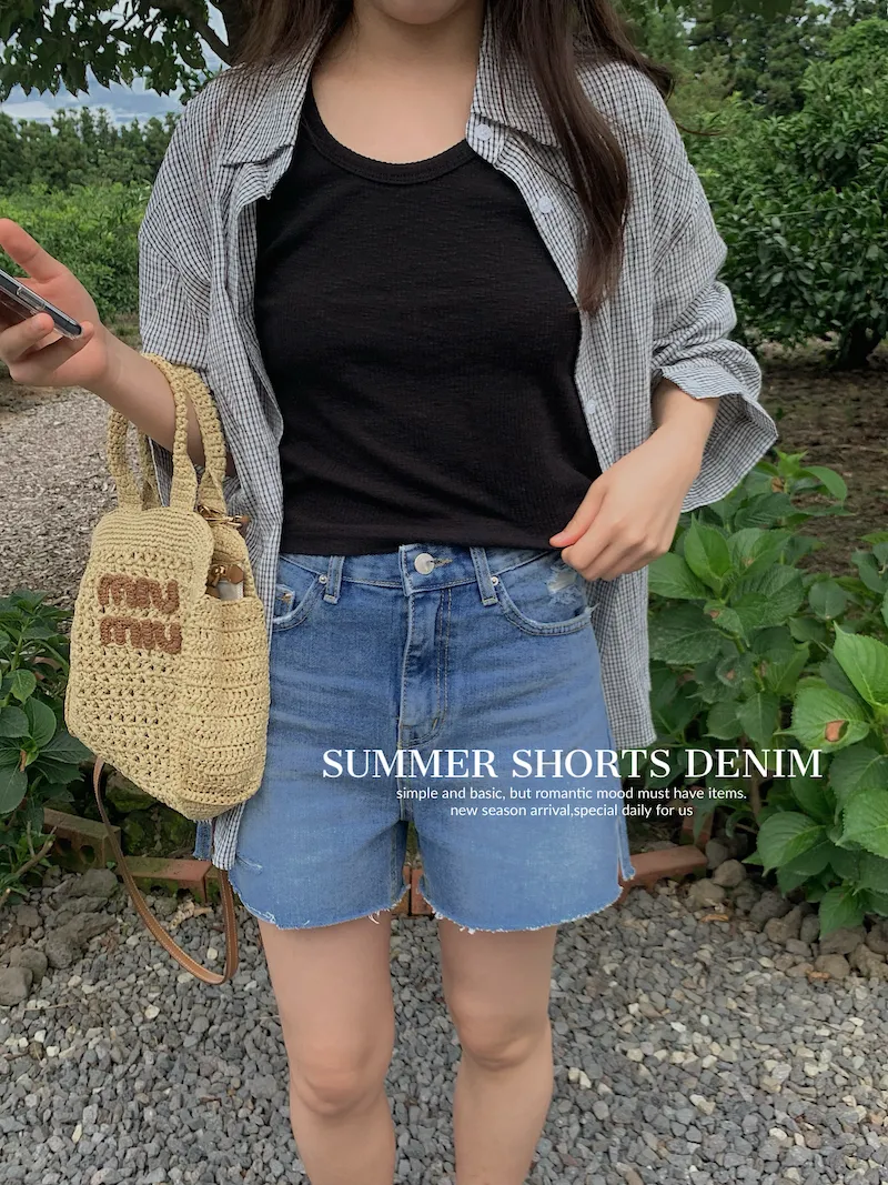我自己覺得跟比以往我們的素面牛仔短褲