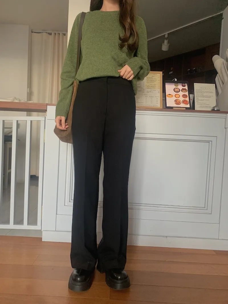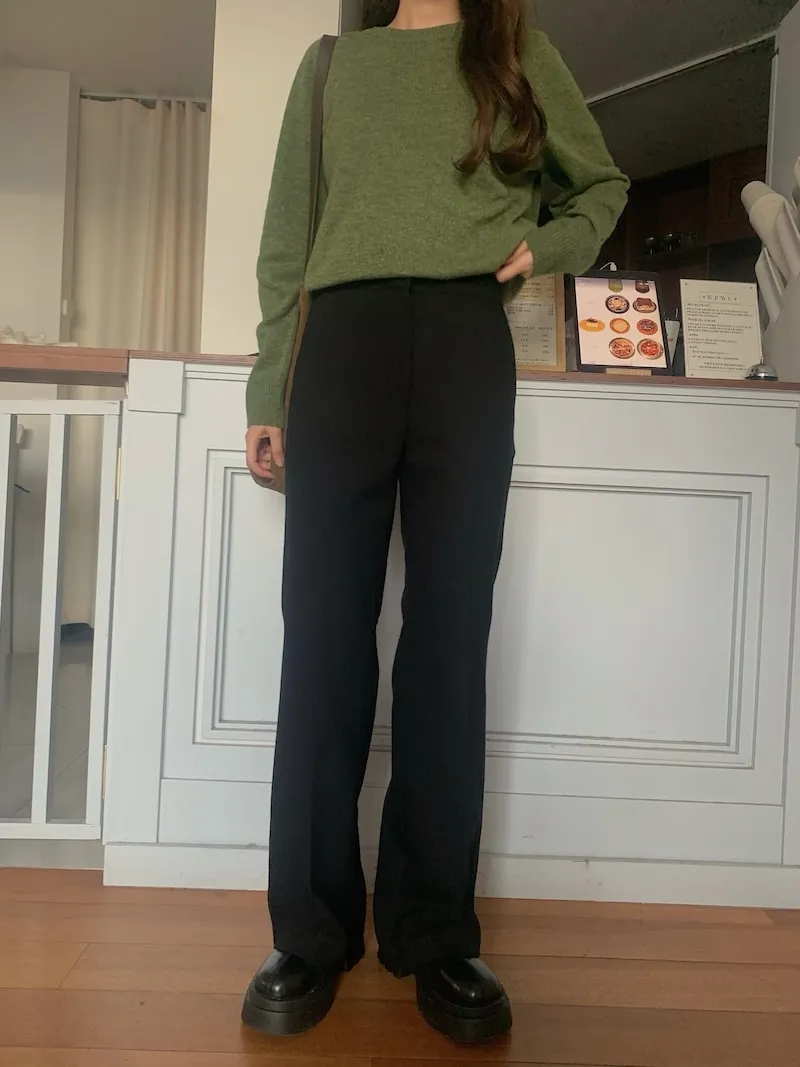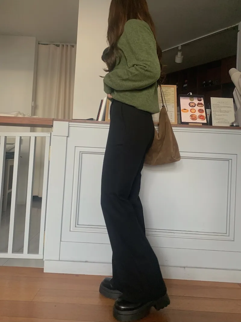 我覺得就是因為他是有一點厚度的,所以才穿起來腿能這麼直跟挺