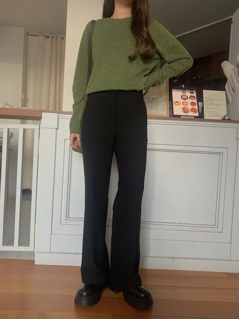 之前每一件上架的喇叭褲我也都是自己剪然後給秀智歐膩穿:)