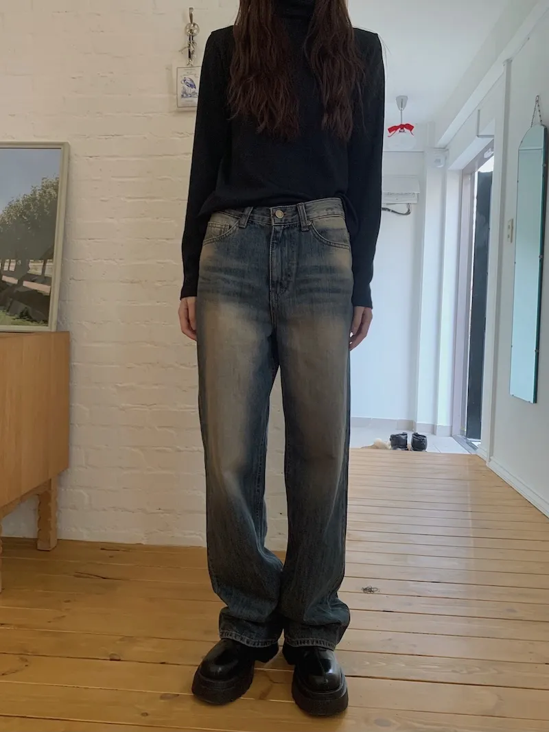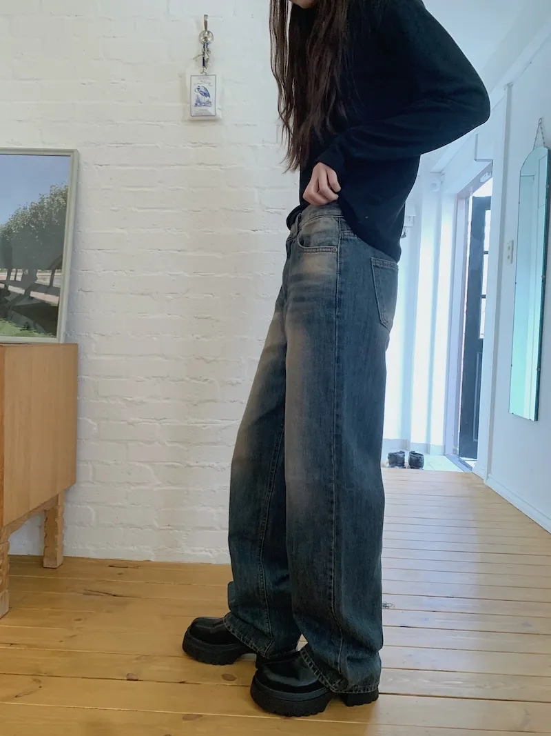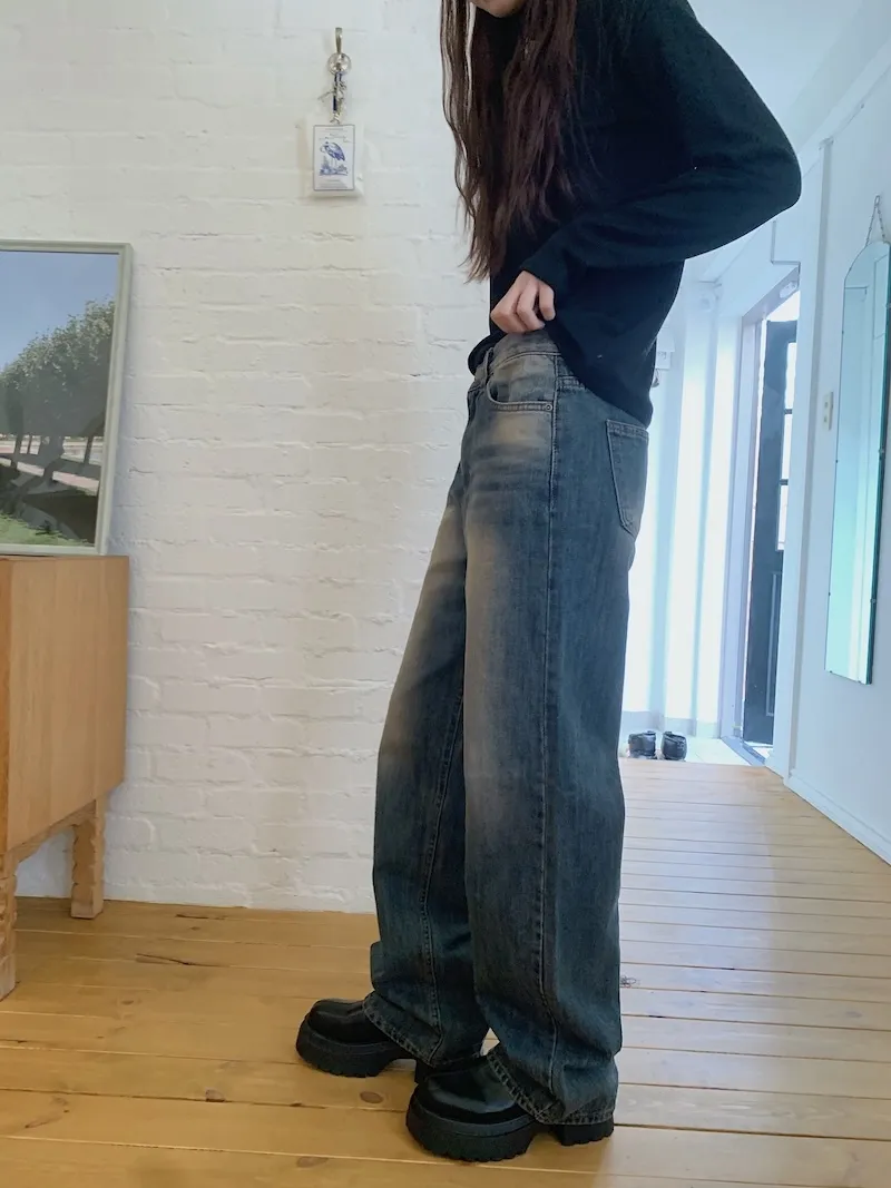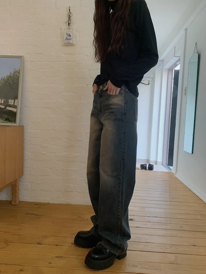 真的褲管寬的牛仔褲