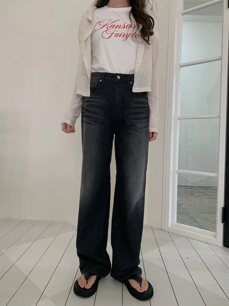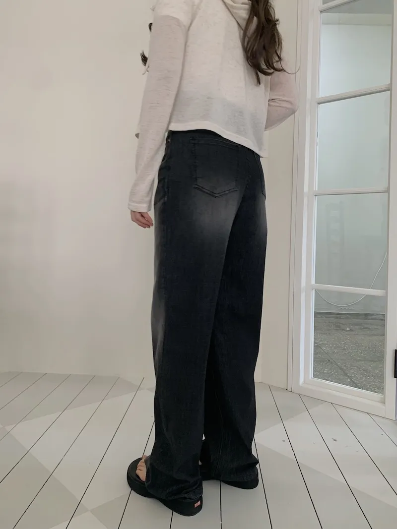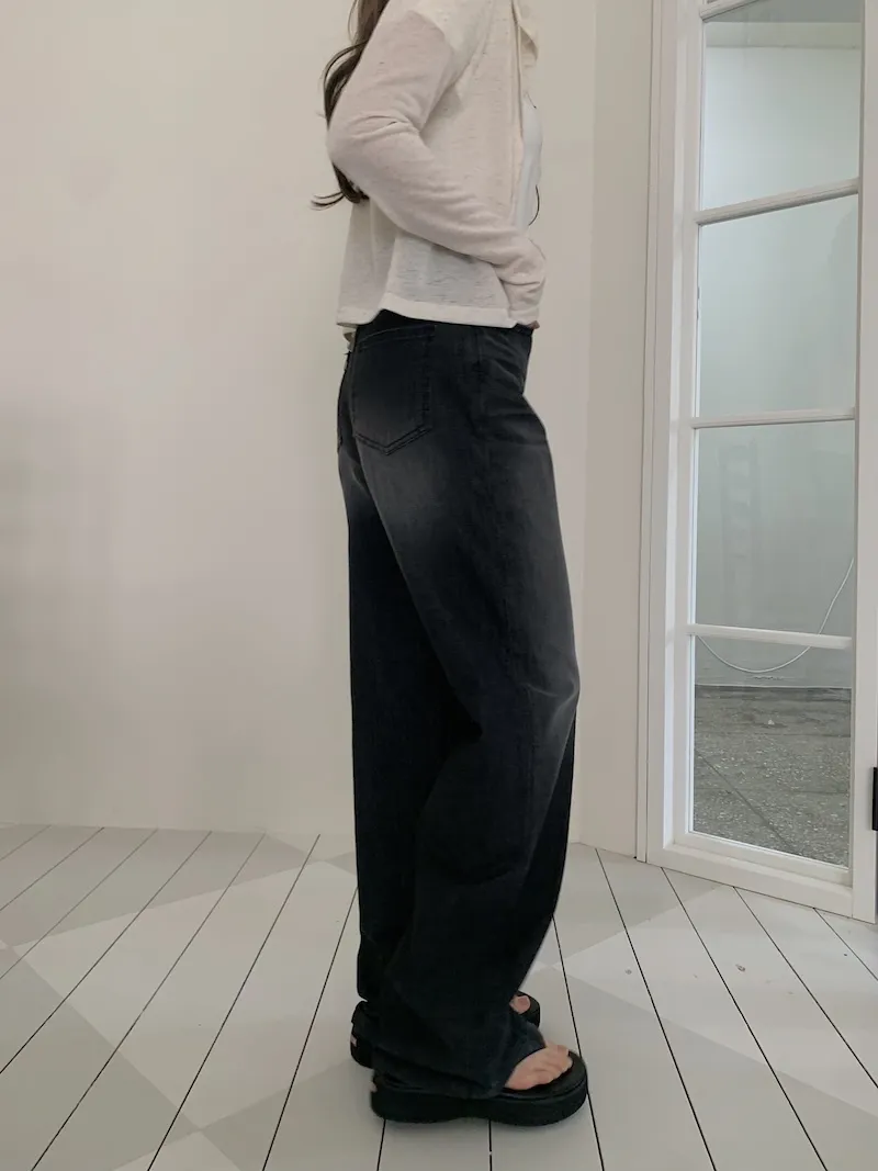 我覺得這件他是屬於那種順身的直筒寬褲