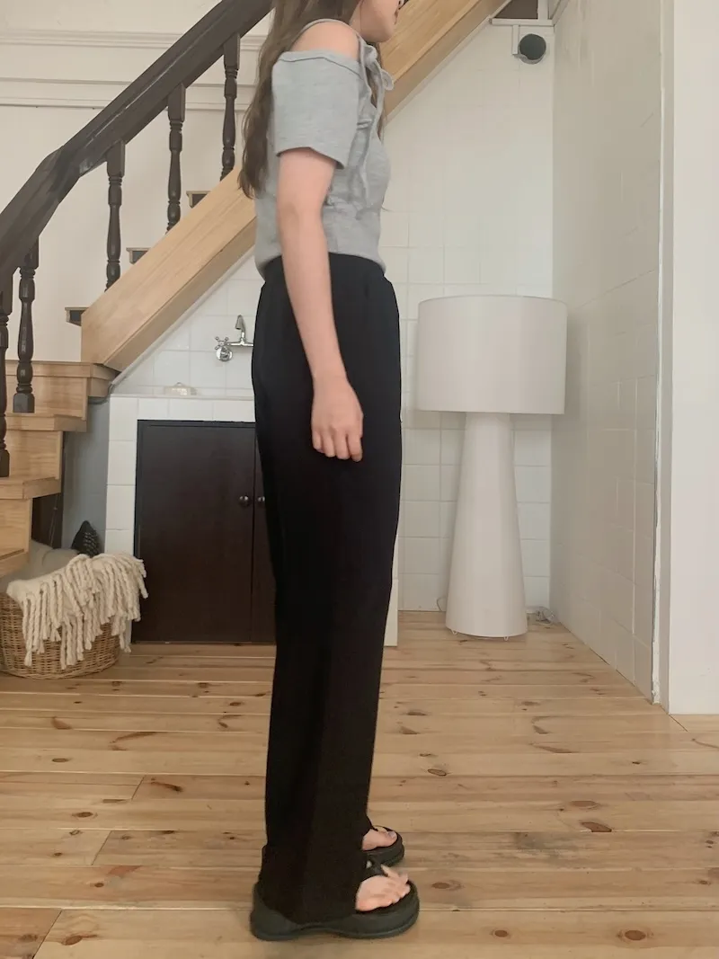 就很容易看起來褲管更寬,然後對我來說有點截身高