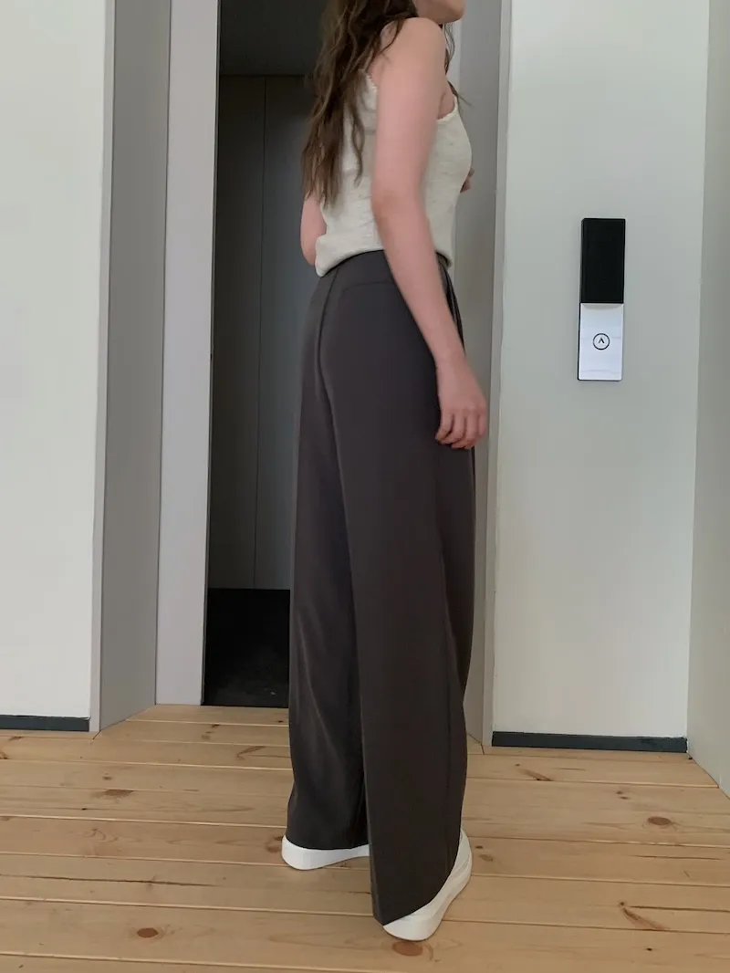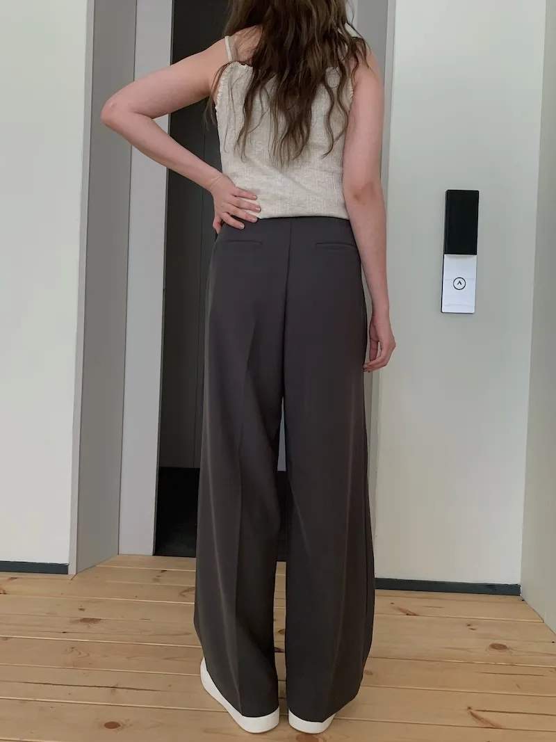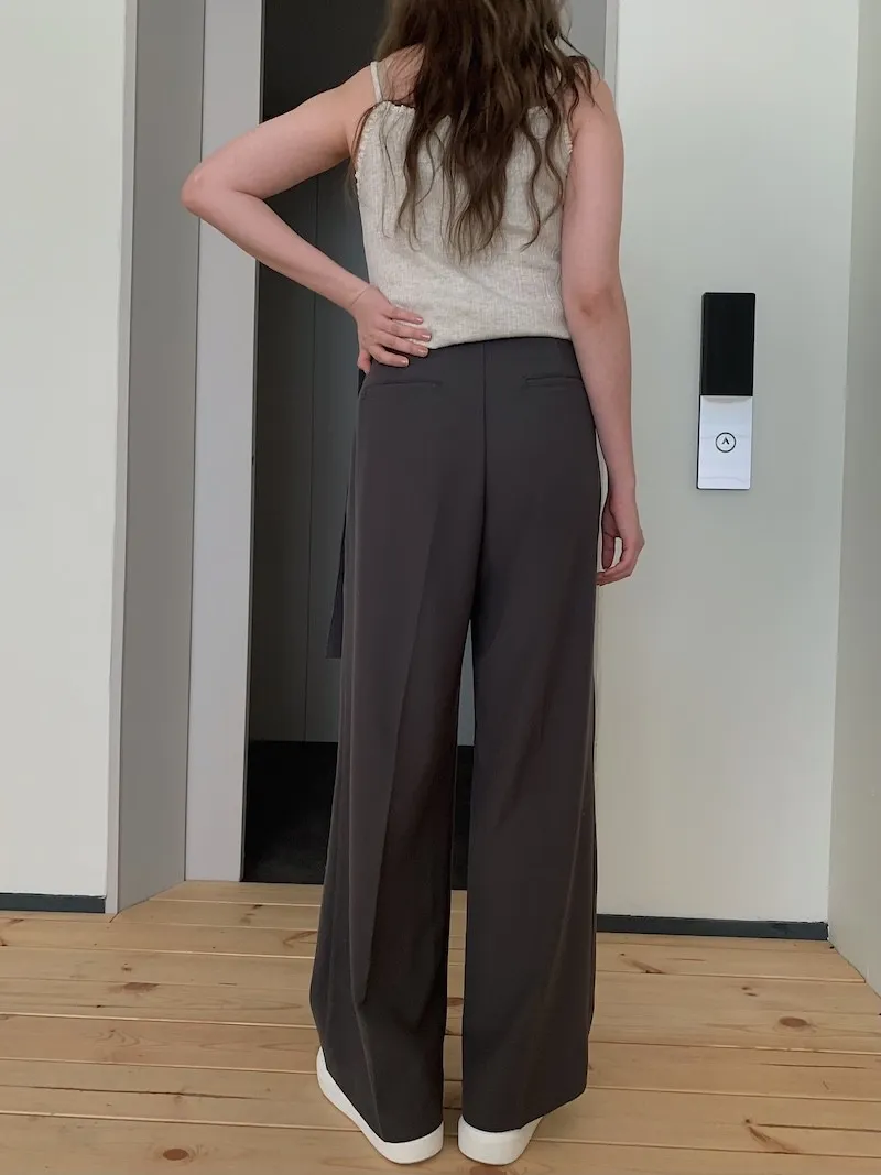 如果稍微拉得高腰一點,我已經就是剛好蓋著腳踝的長度了