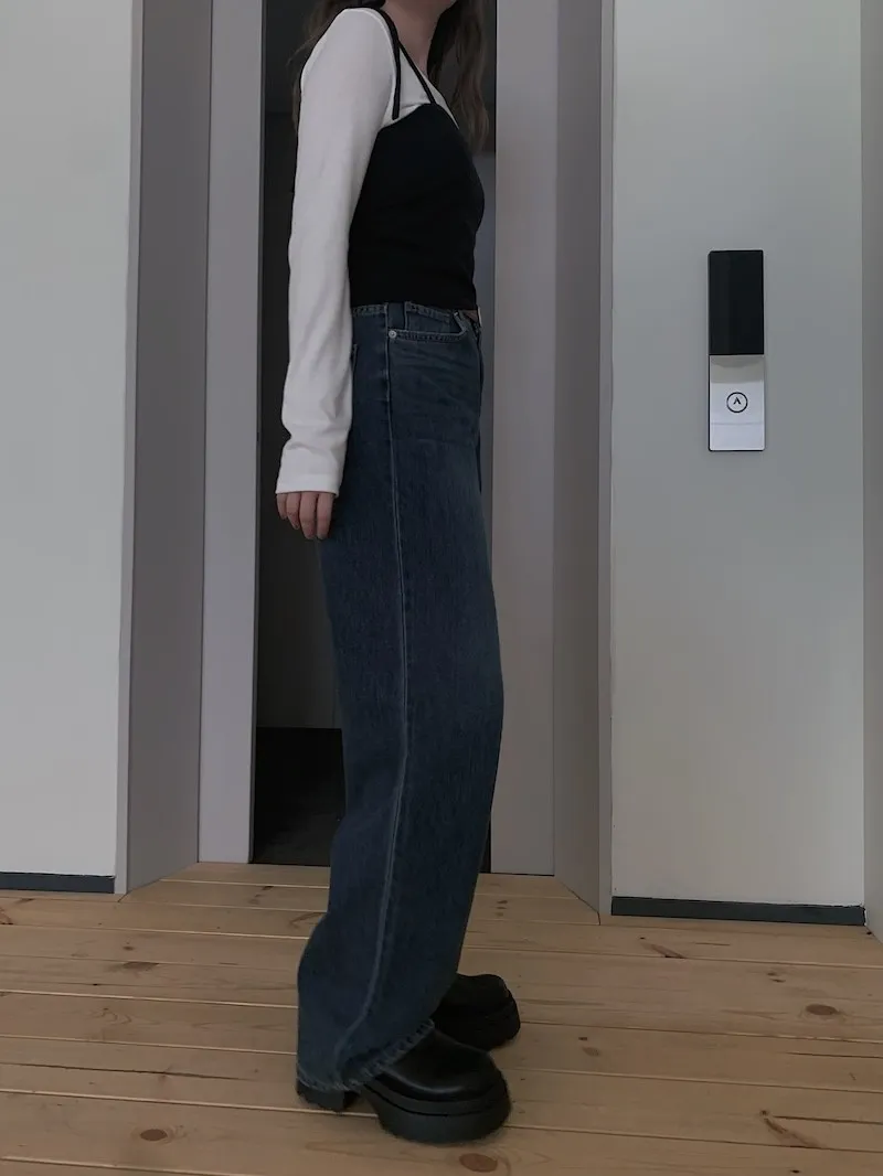 可以落地顯腿長但又不會踩到的:)