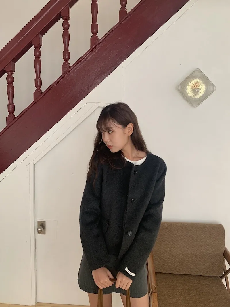 不然我其實本來沒有特別喜歡這種無領的手工大衣