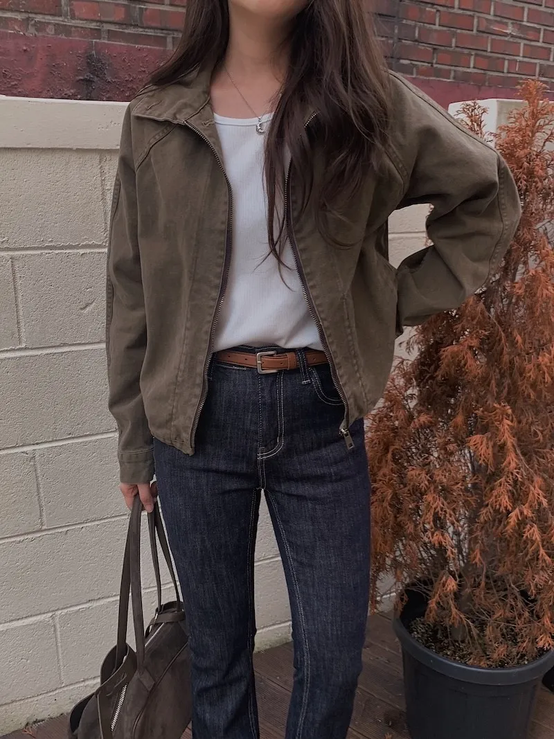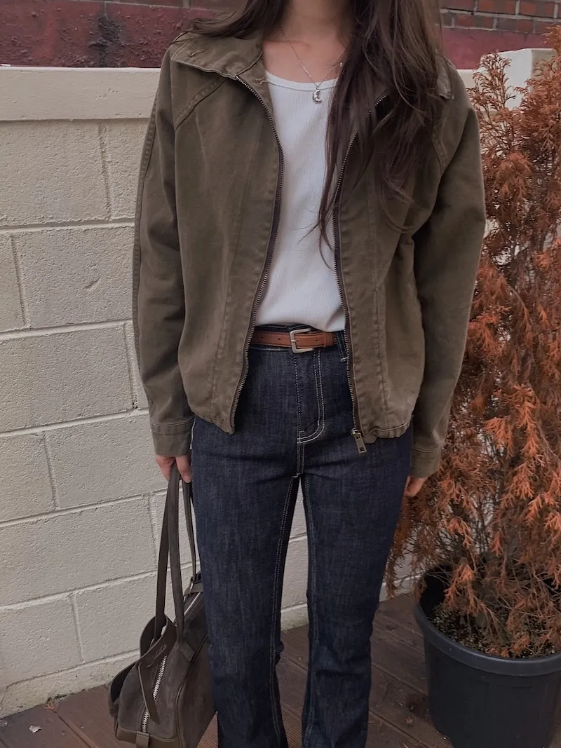 4.看似基本款的有領子拉鍊外套,不過他的細節蠻多的
