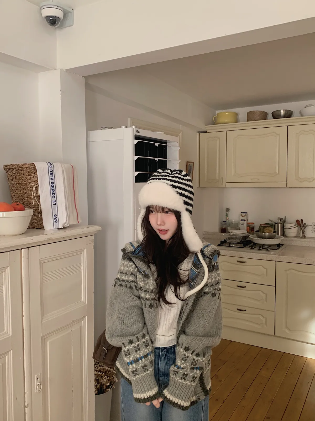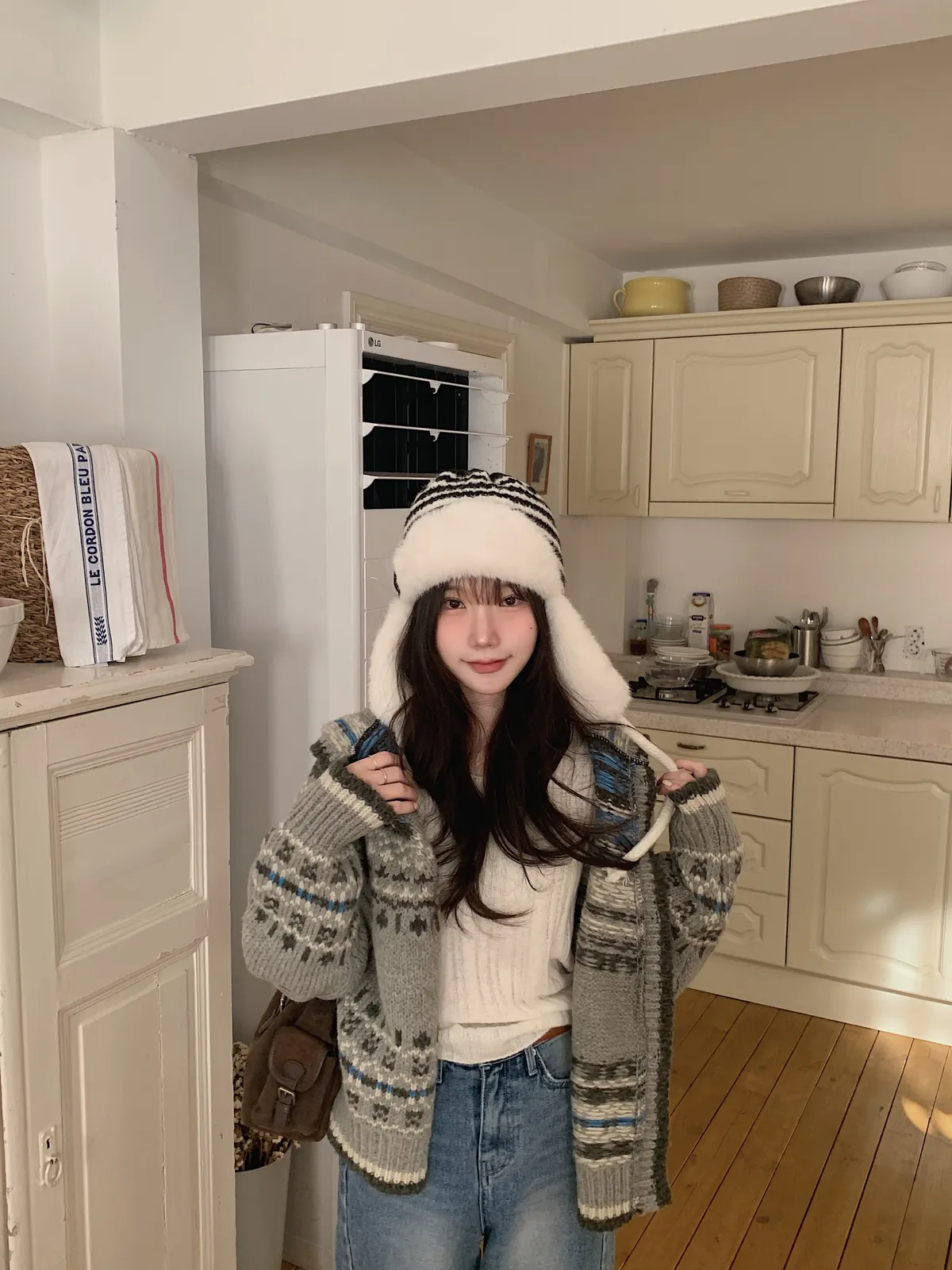 而且我必須說,因為這件針織有厚度的關係,他的帽子的型超好看