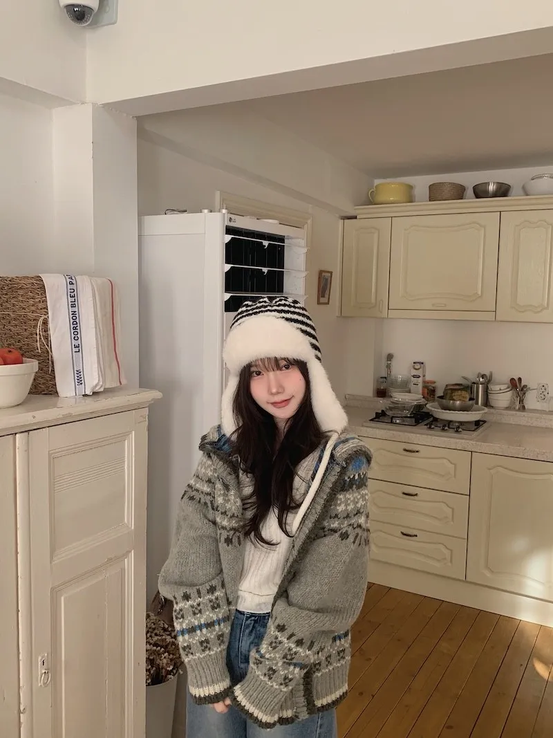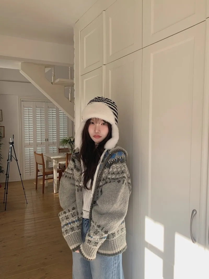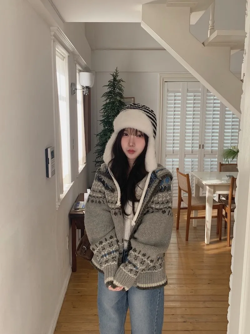 他多了帽子跟翻領的設計,甚至還會比一般連帽的針織外套更能修飾肩寬ʕ˶'༥'˶ʔ