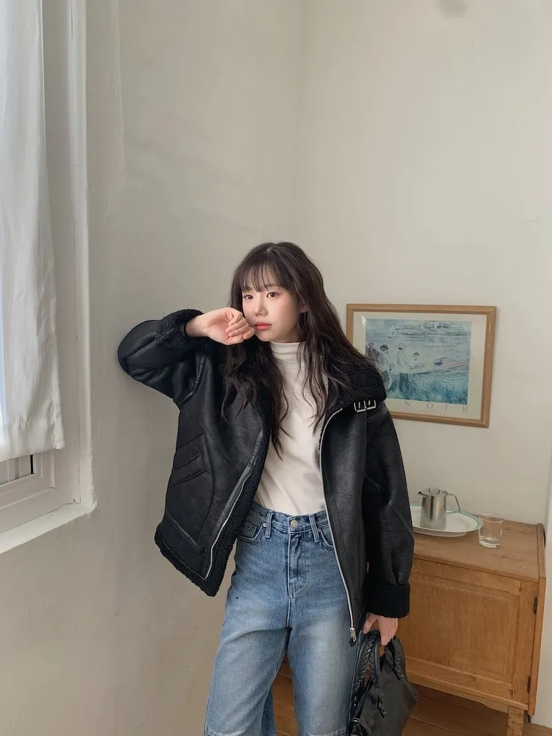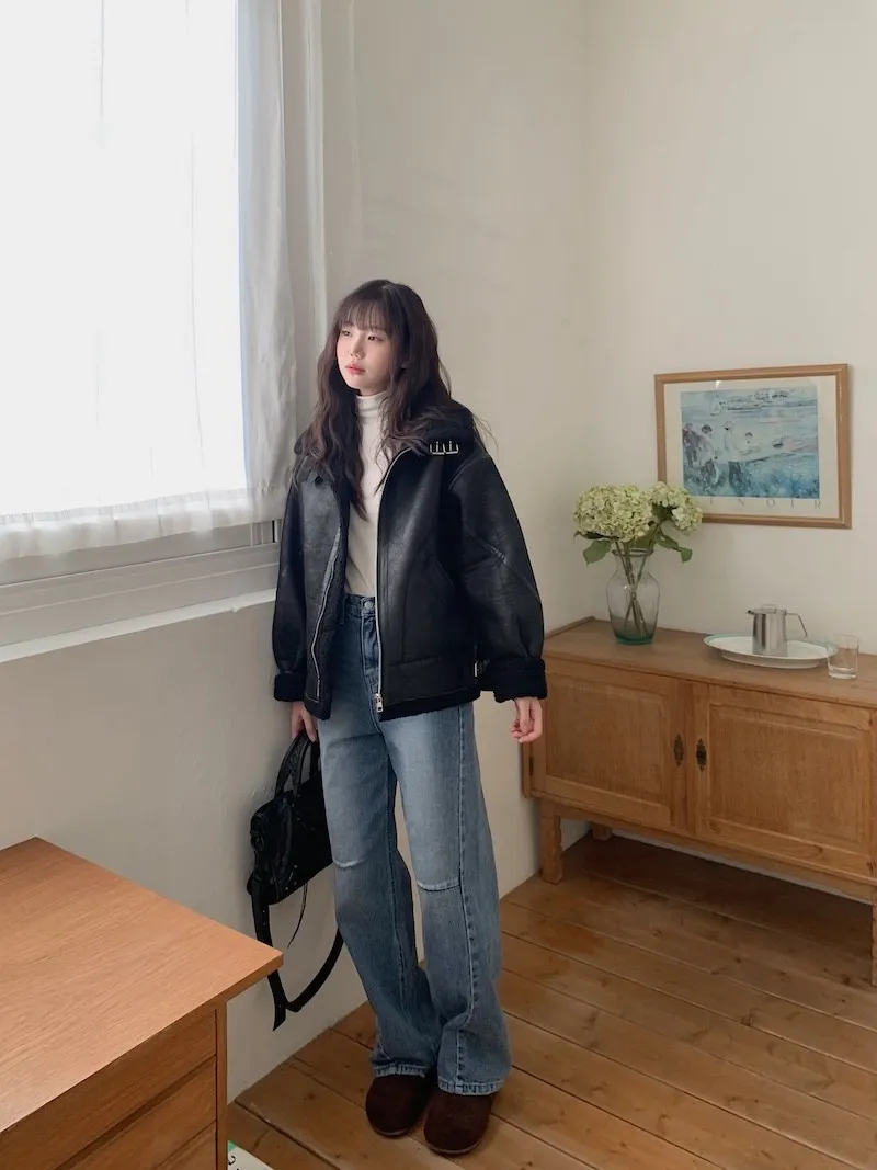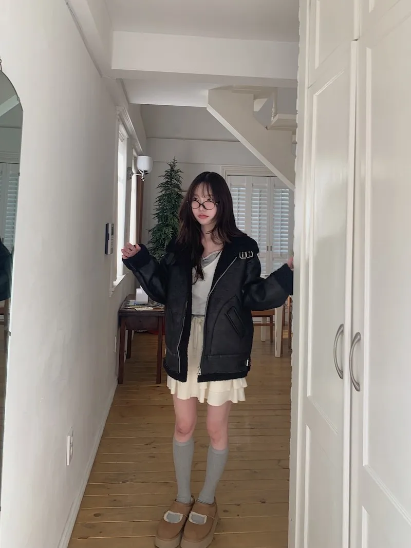 (ps.翻領毛毛雖然跟騎士麂皮厚度差很多