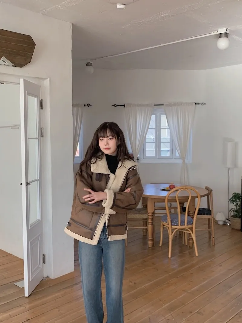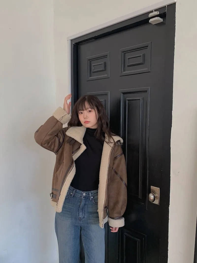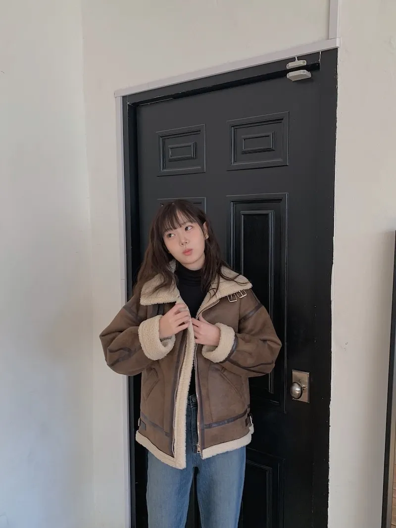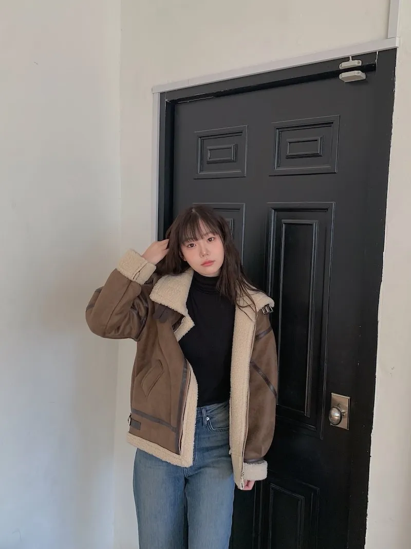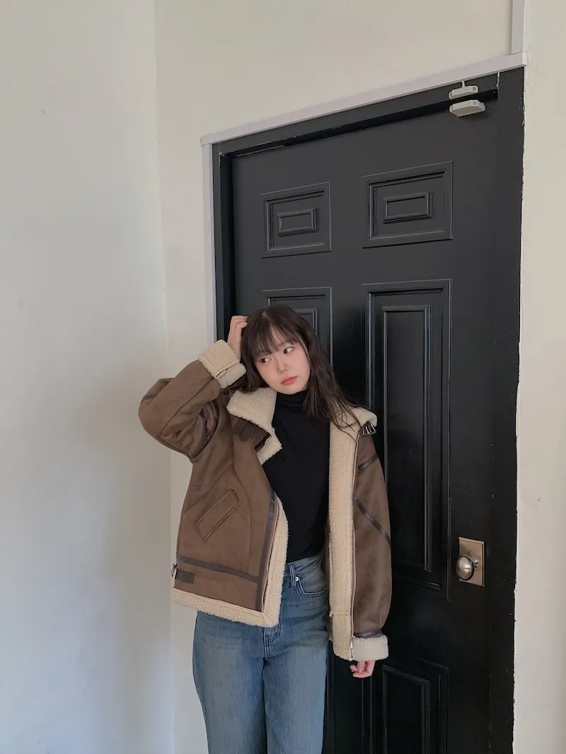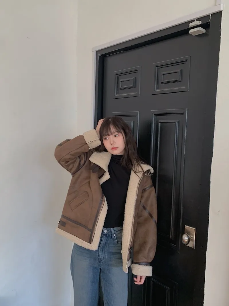 (ps.翻領毛毛雖然跟騎士麂皮厚度差很多