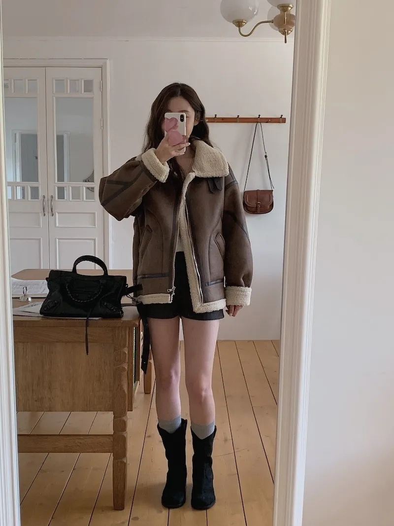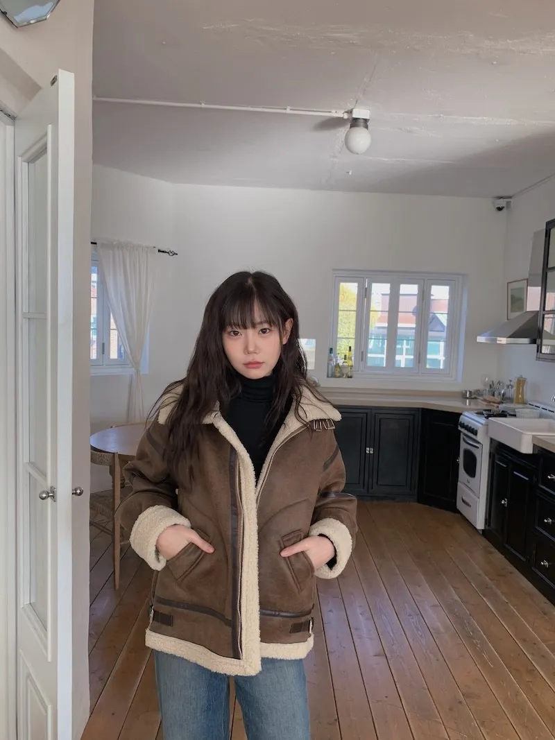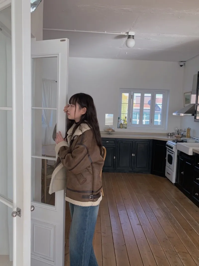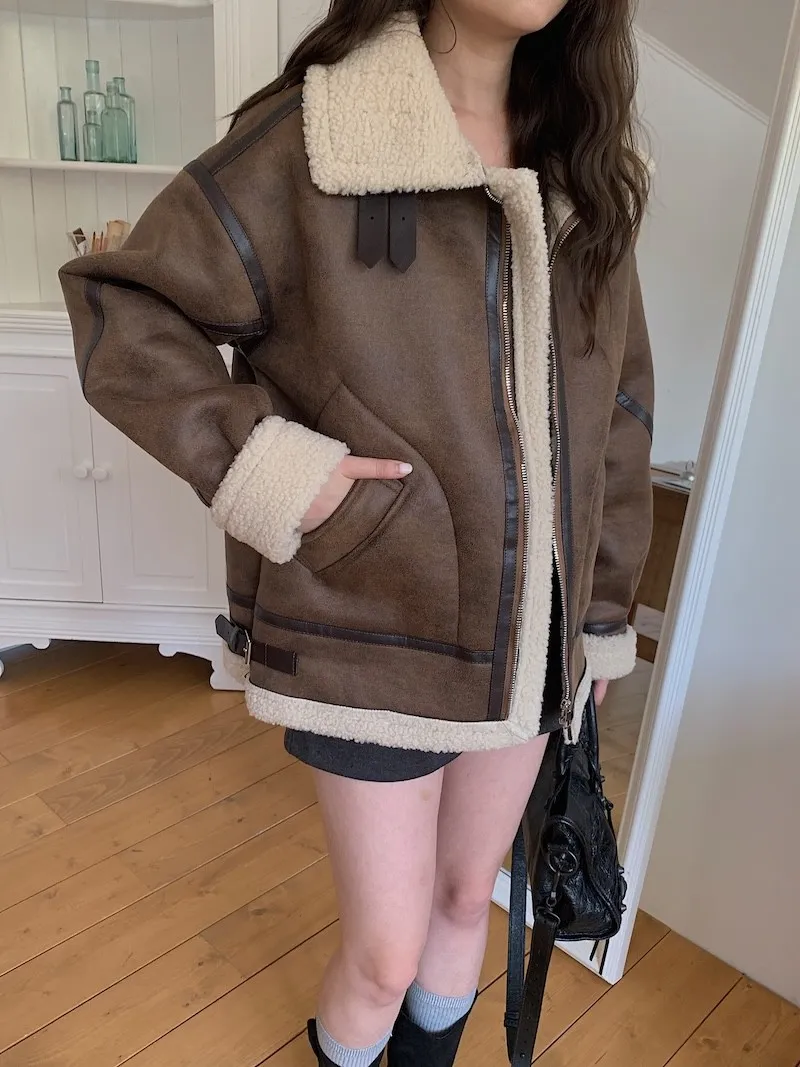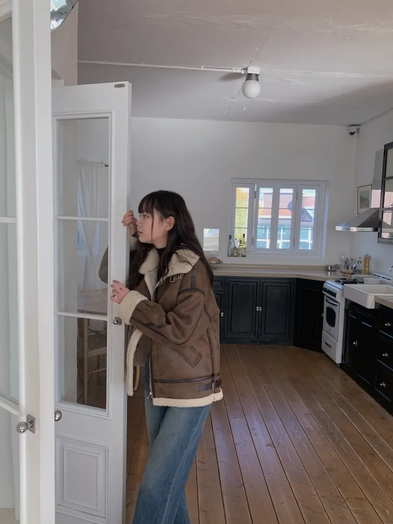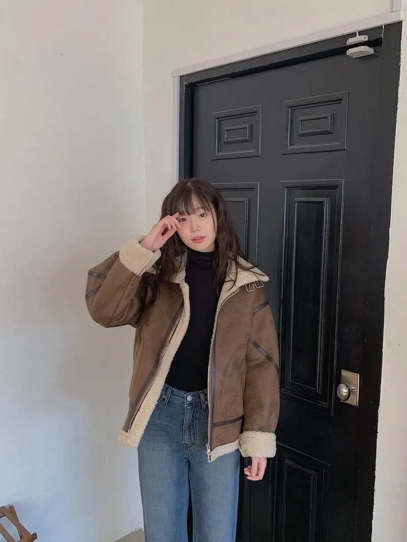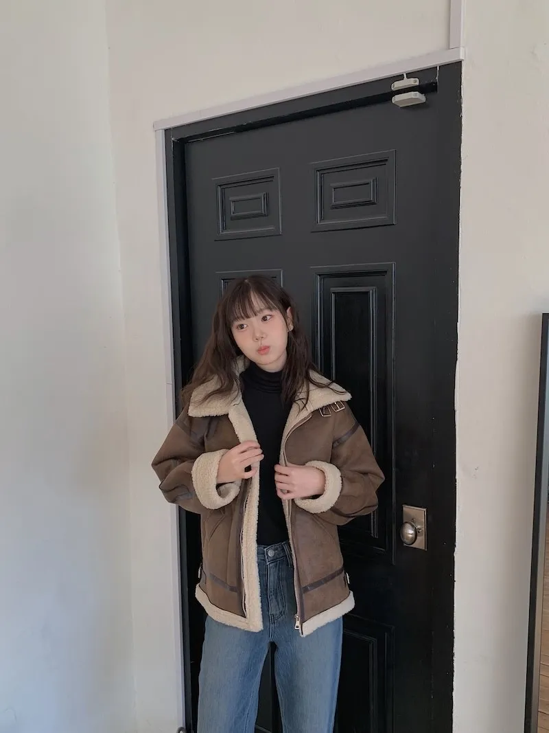 (ps.翻領毛毛雖然跟騎士麂皮厚度差很多