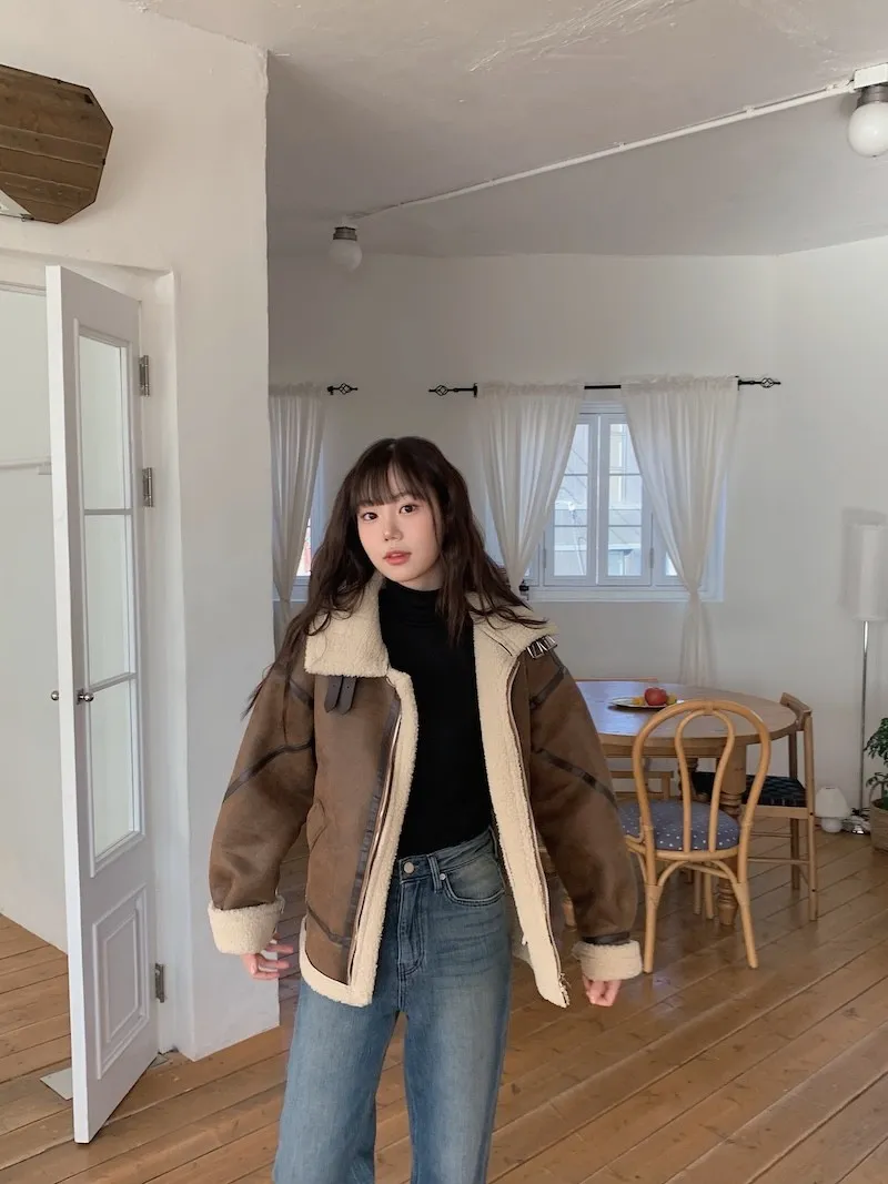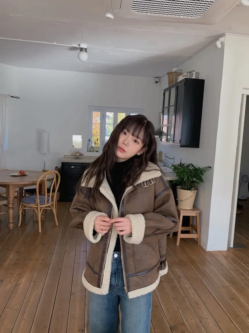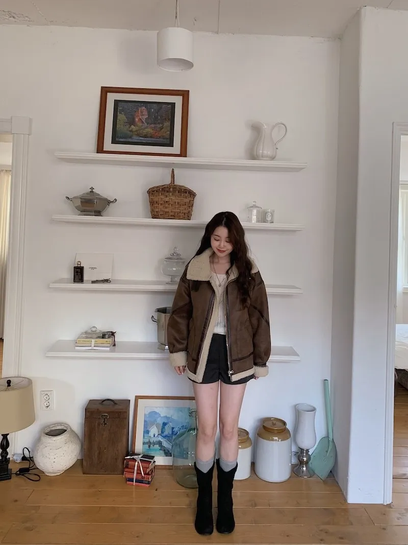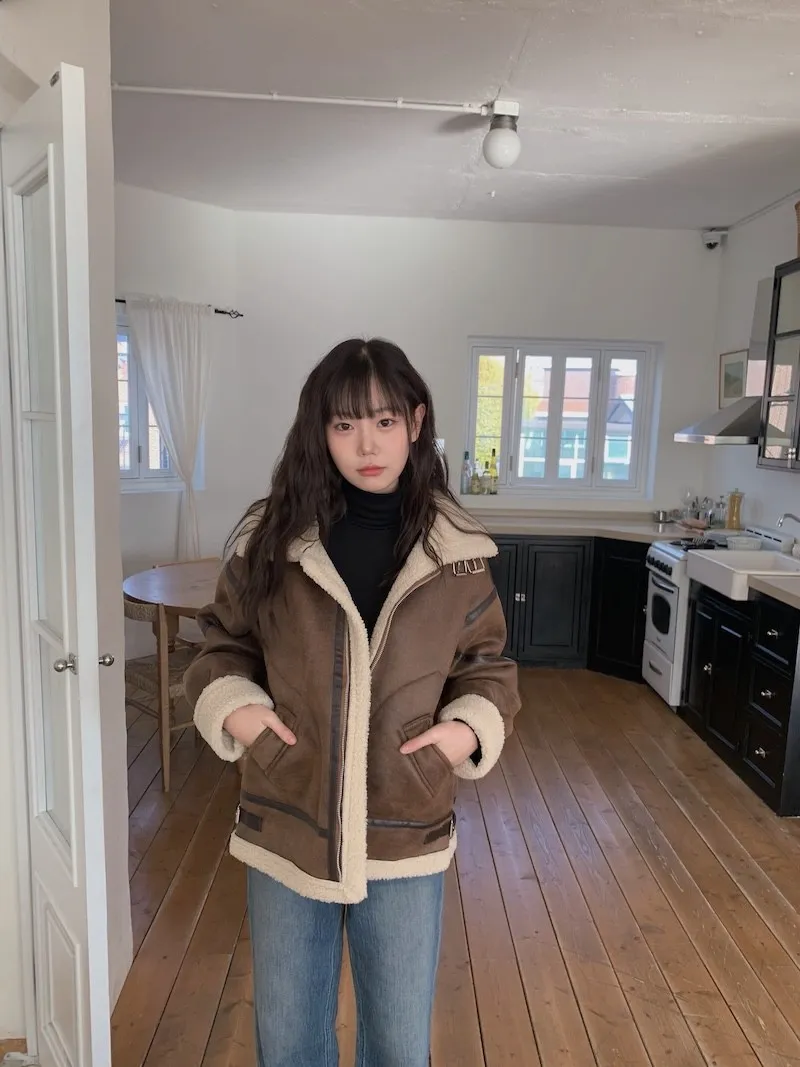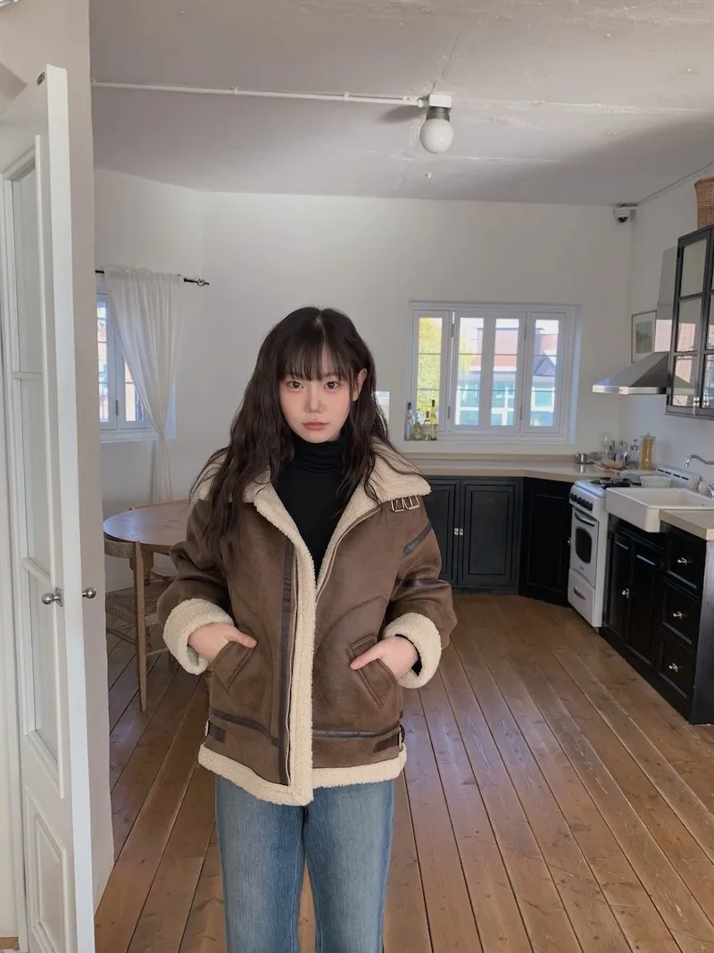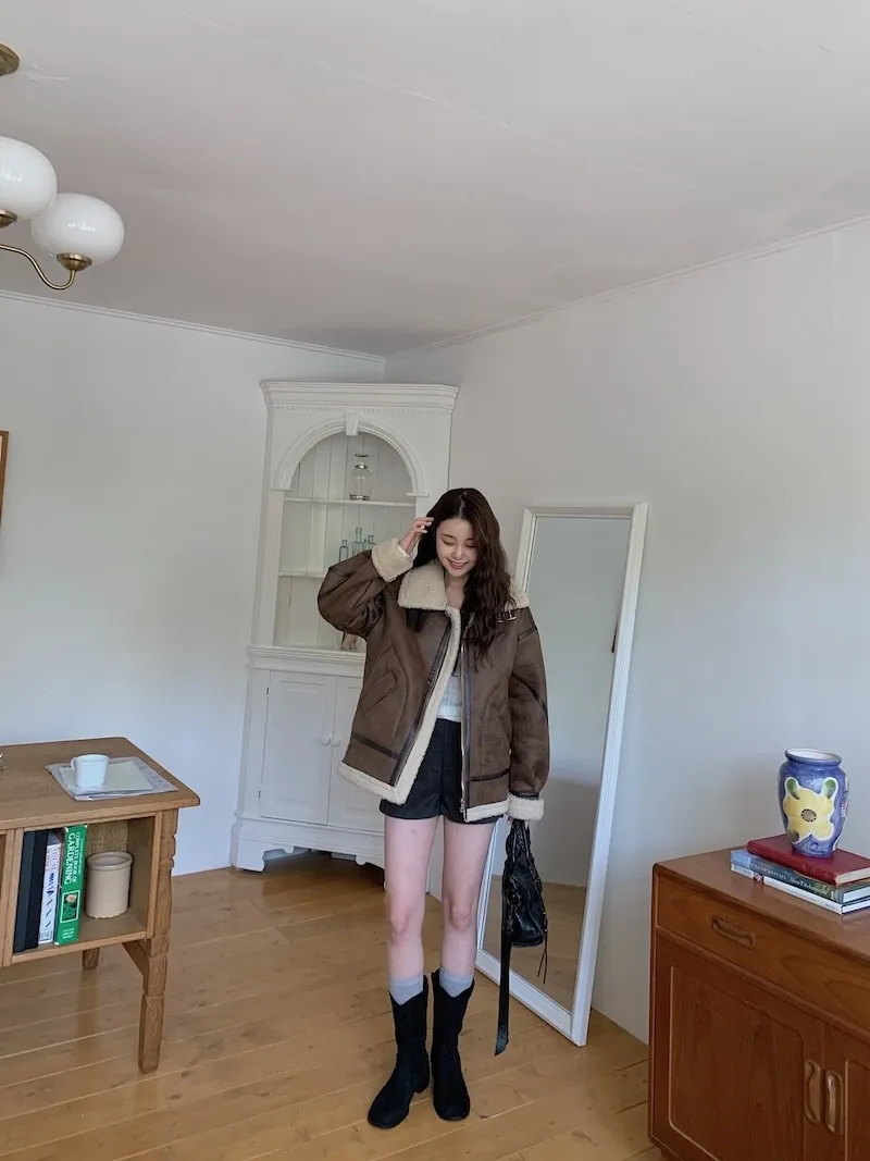 (ps.翻領毛毛雖然跟騎士麂皮厚度差很多