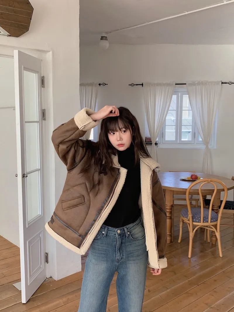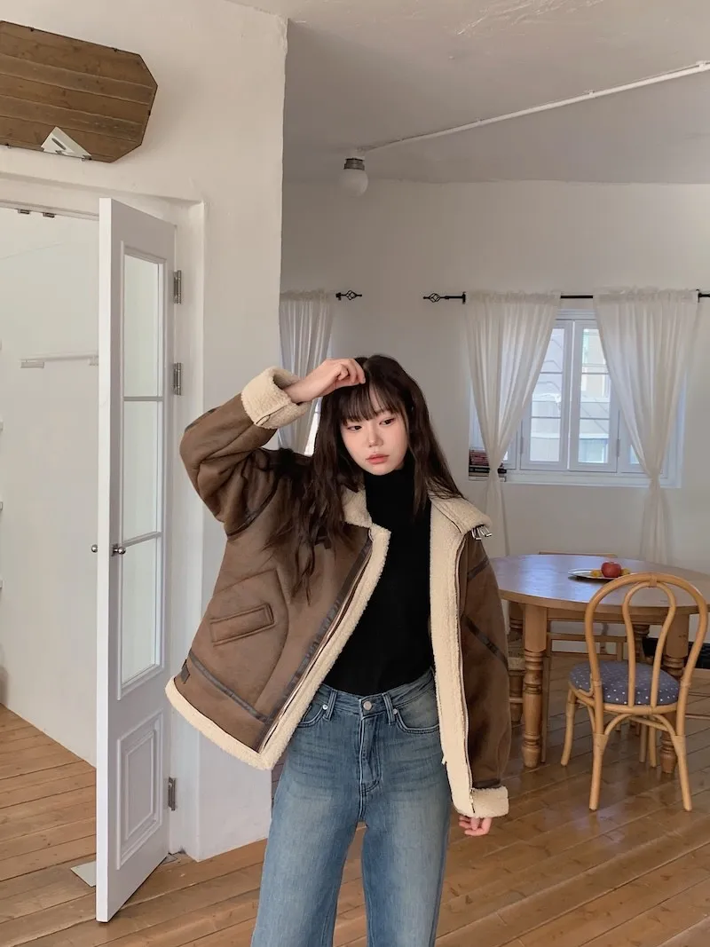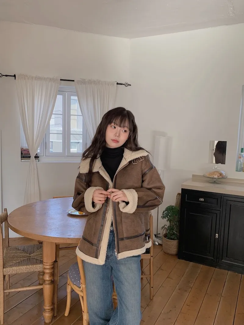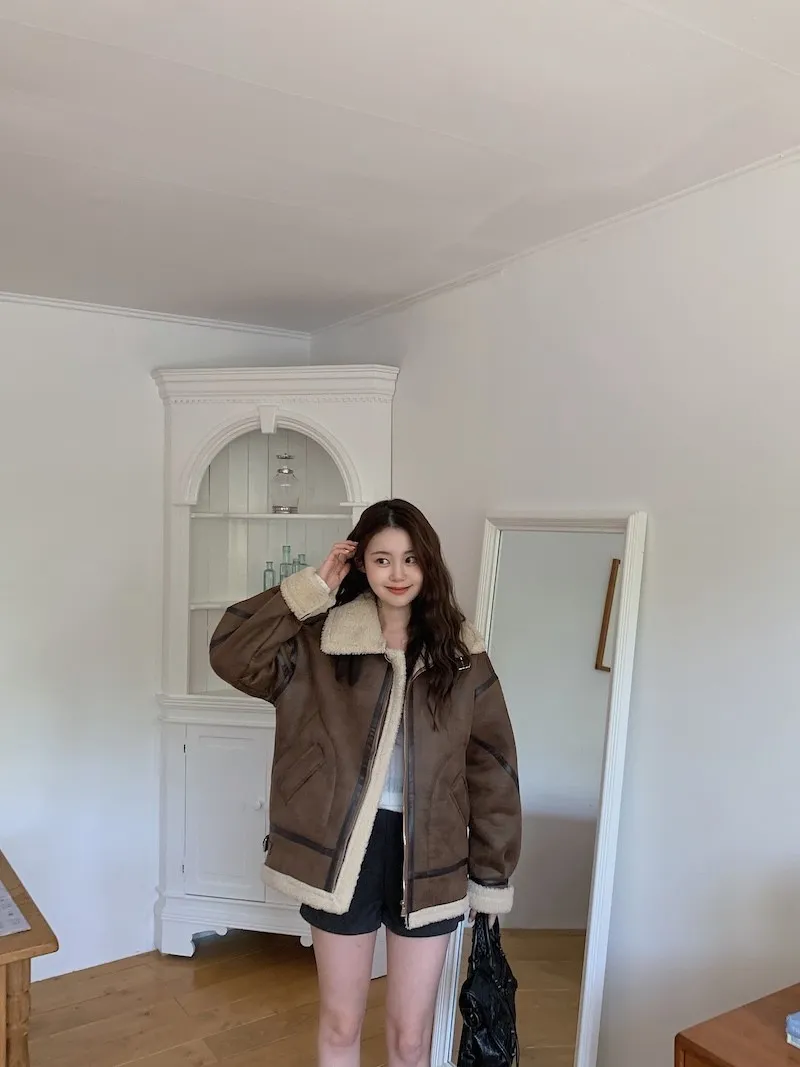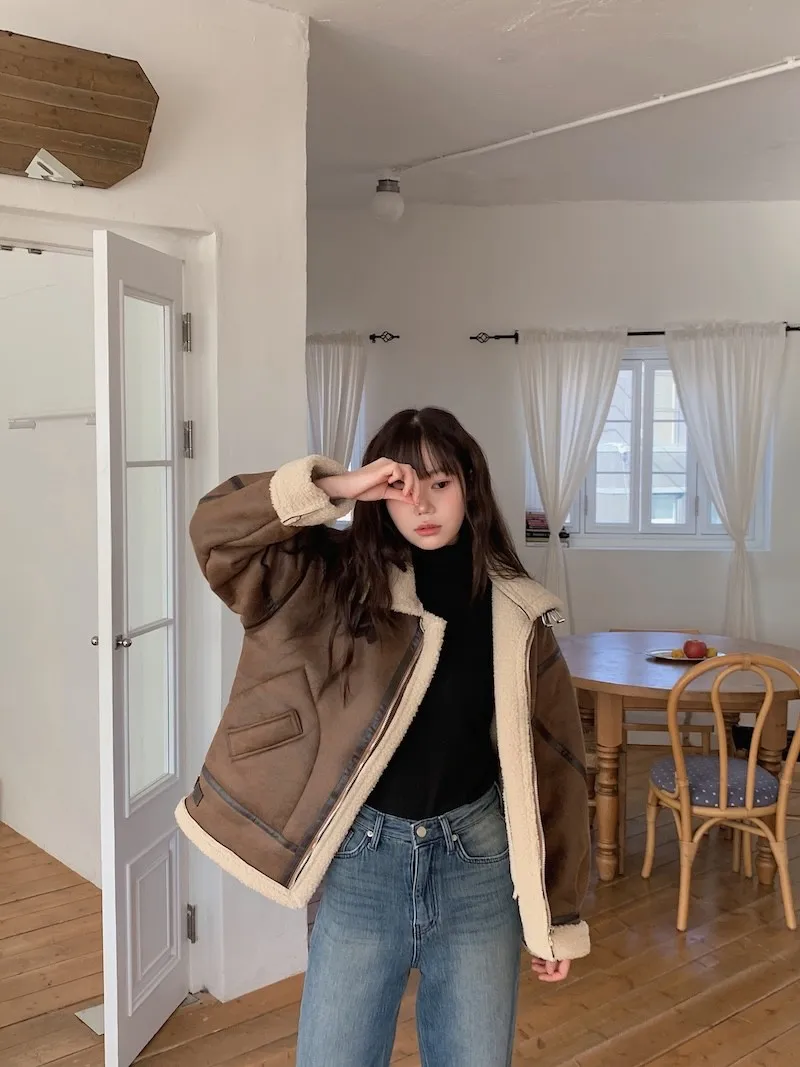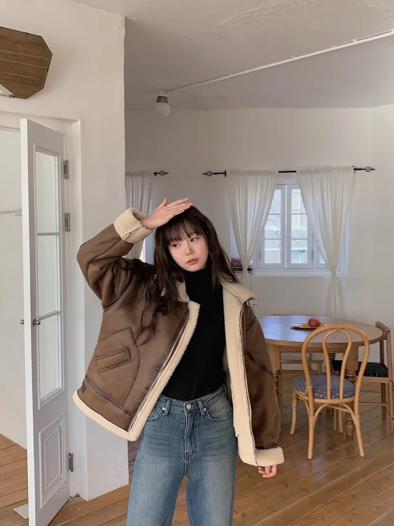 (ps.翻領毛毛雖然跟騎士麂皮厚度差很多