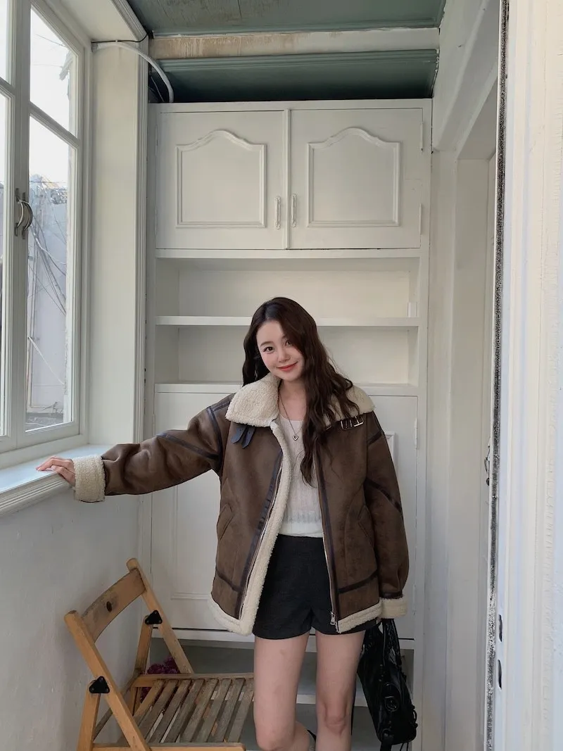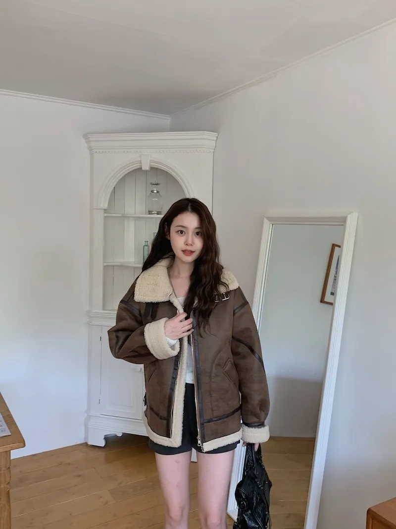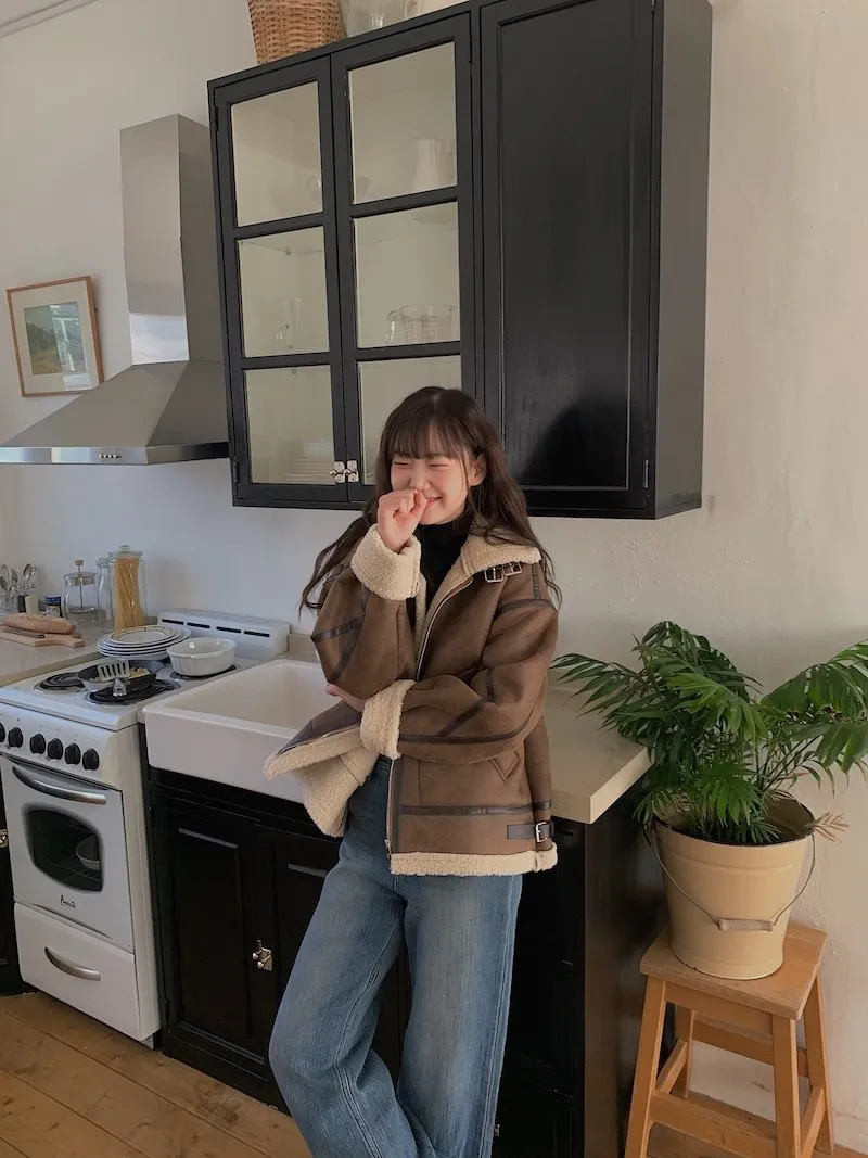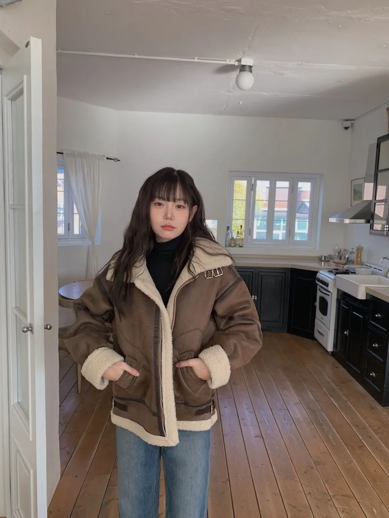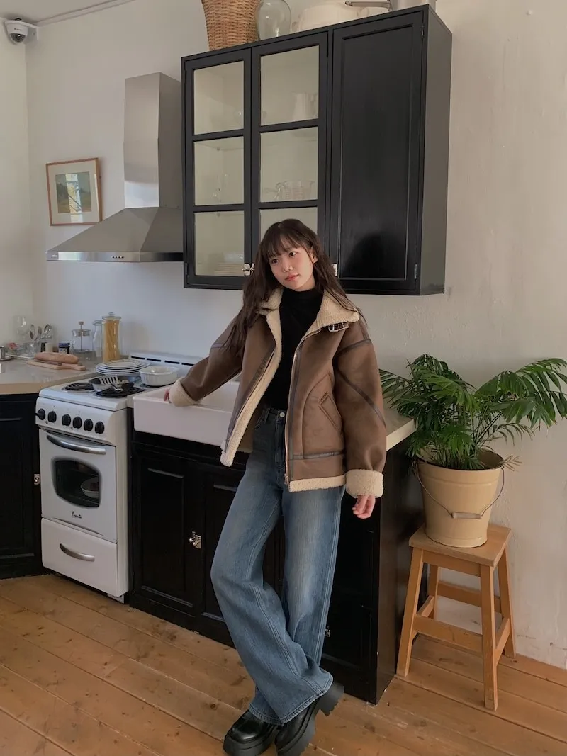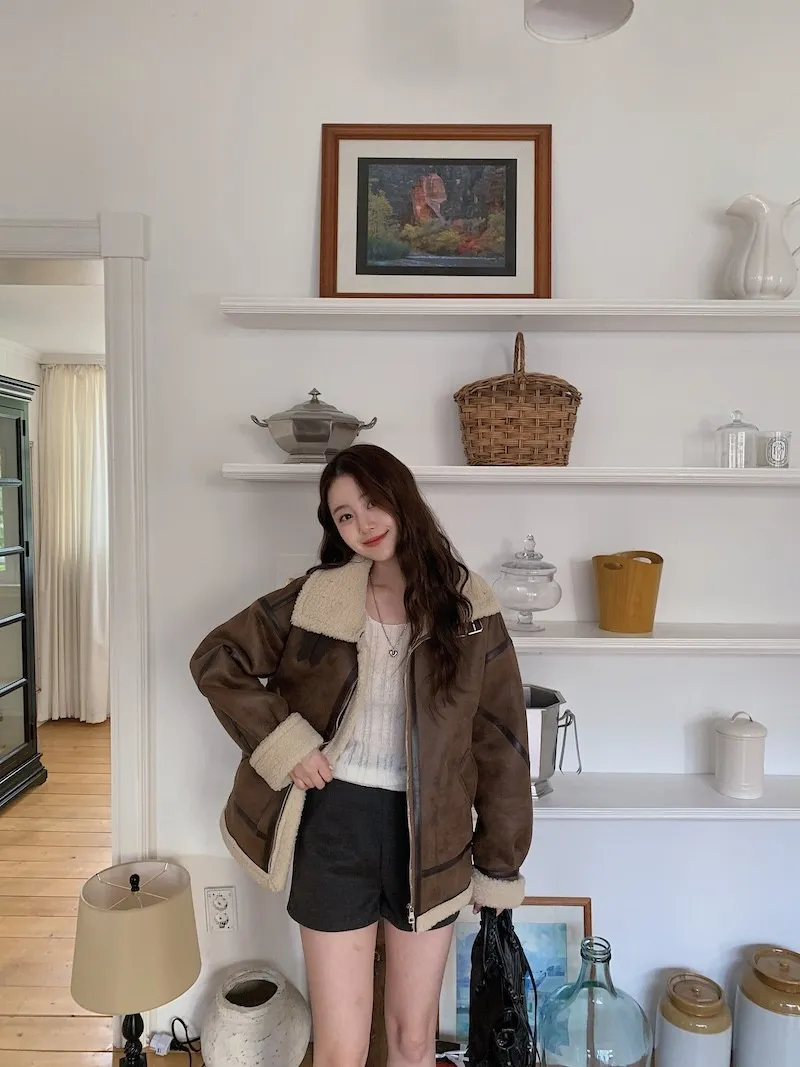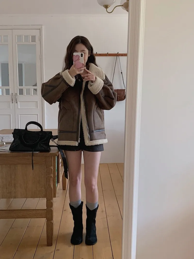 (ps.翻領毛毛雖然跟騎士麂皮厚度差很多