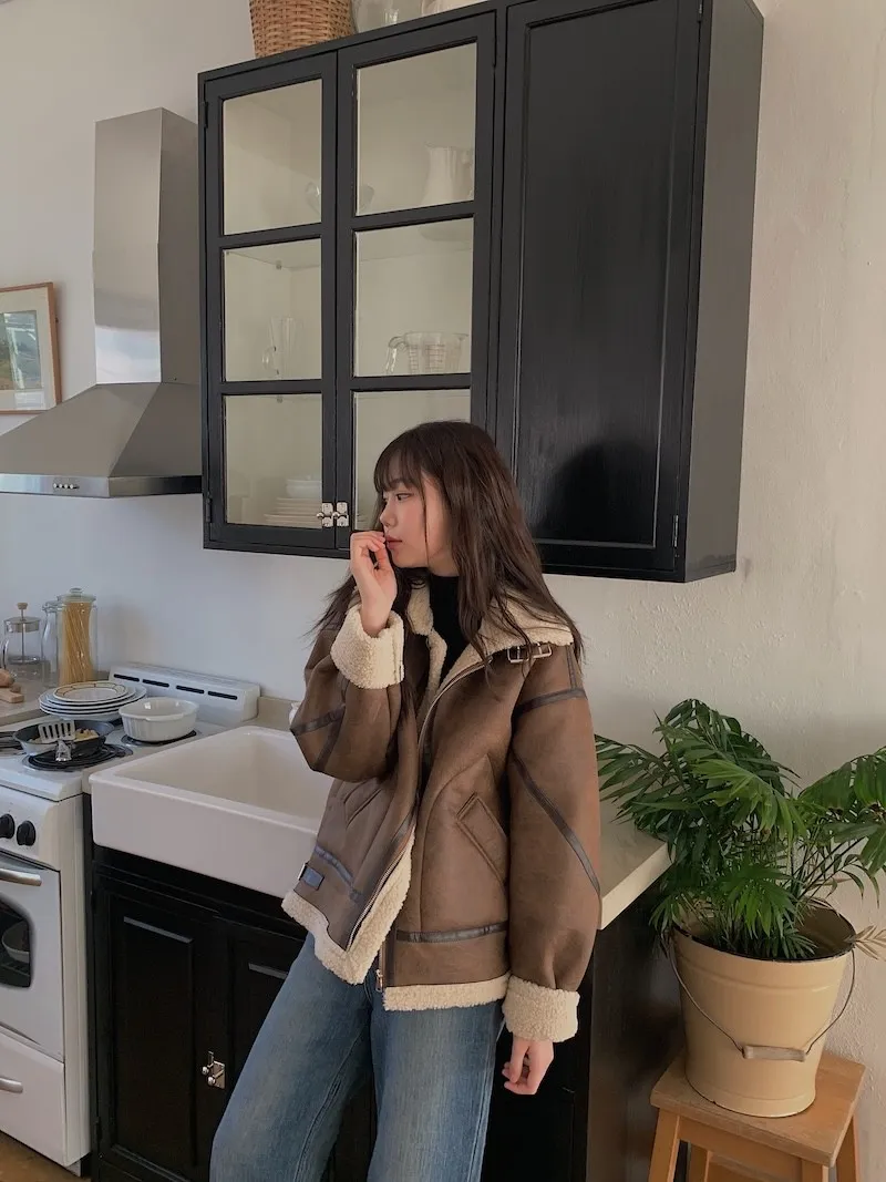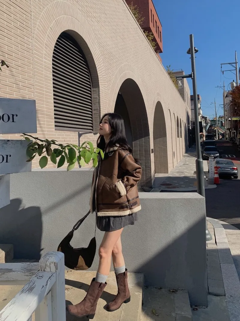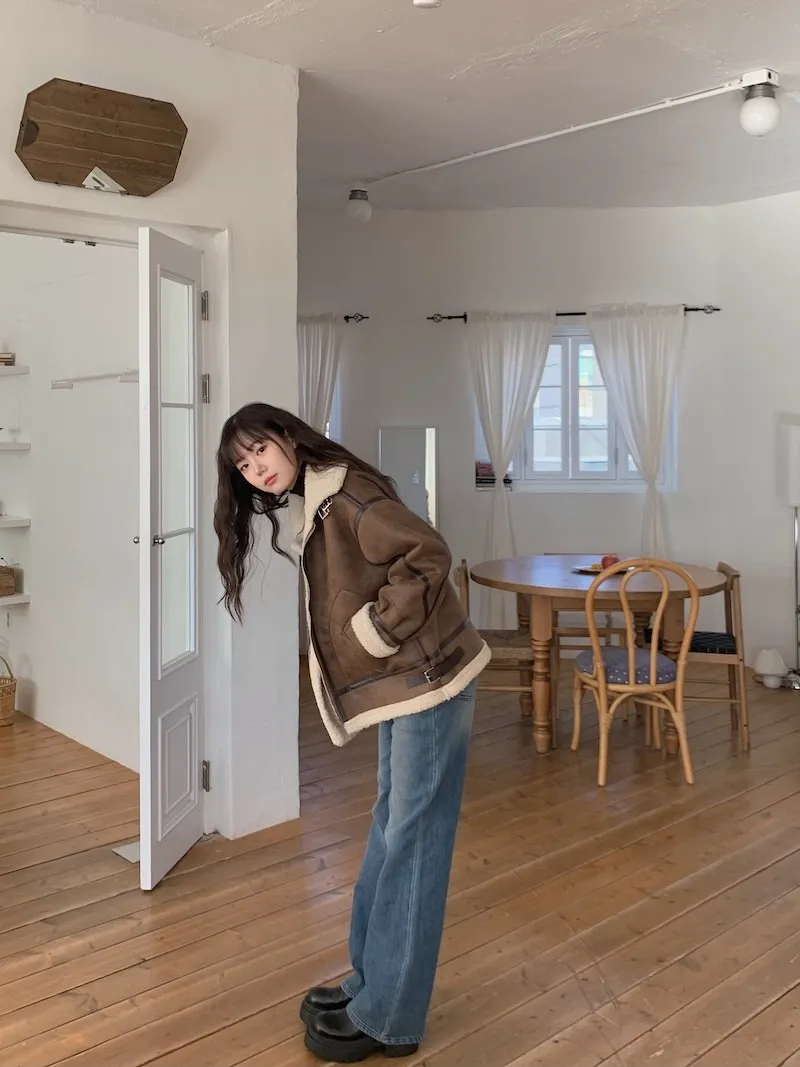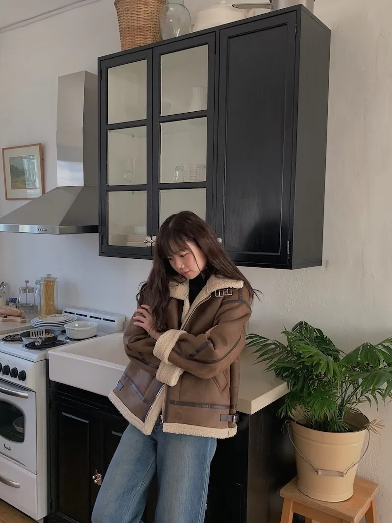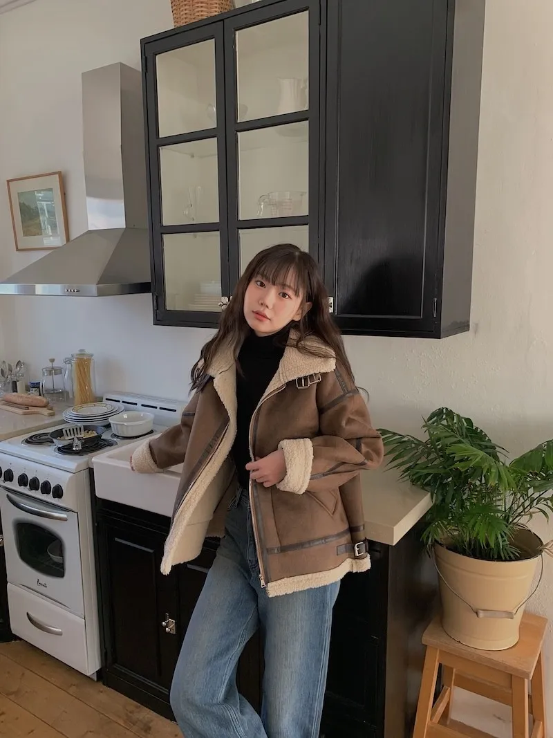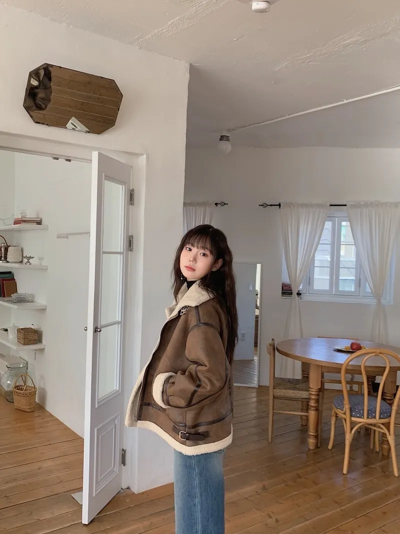 (ps.翻領毛毛雖然跟騎士麂皮厚度差很多