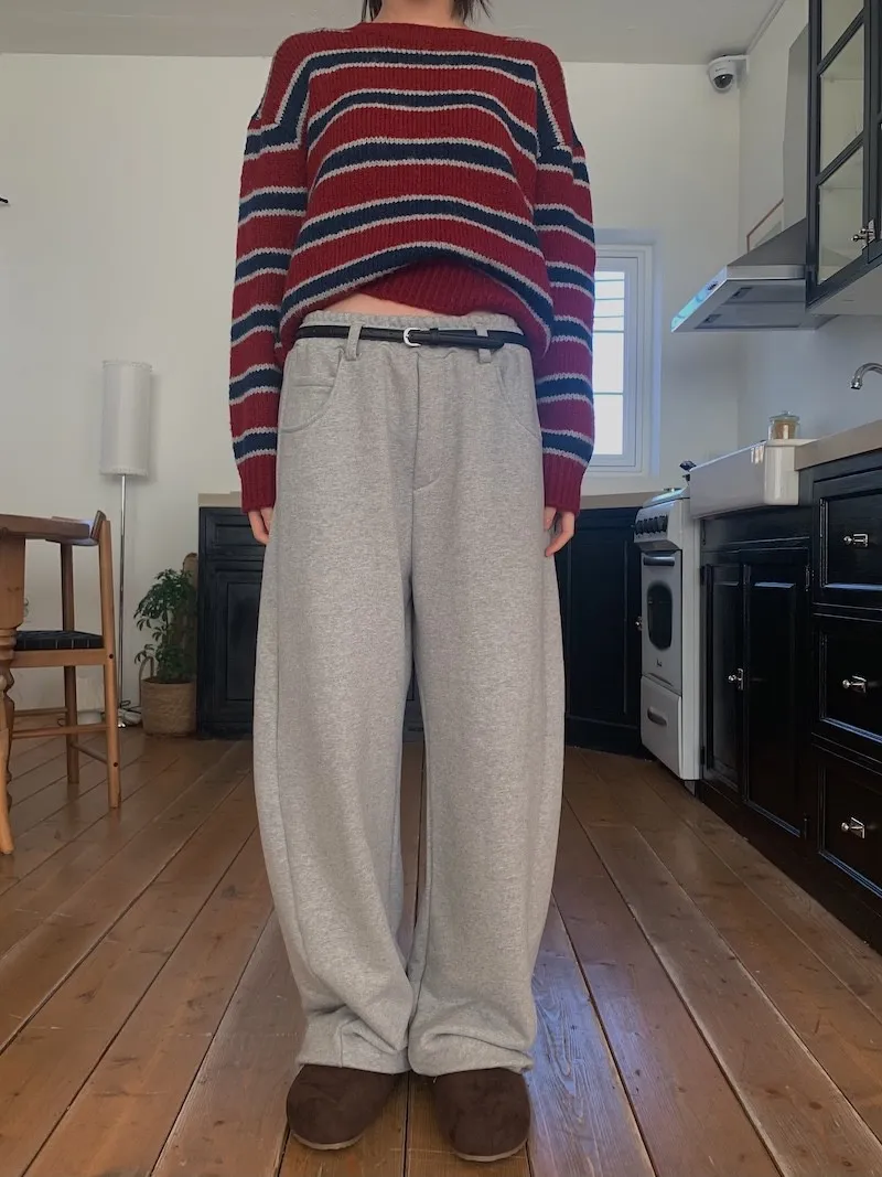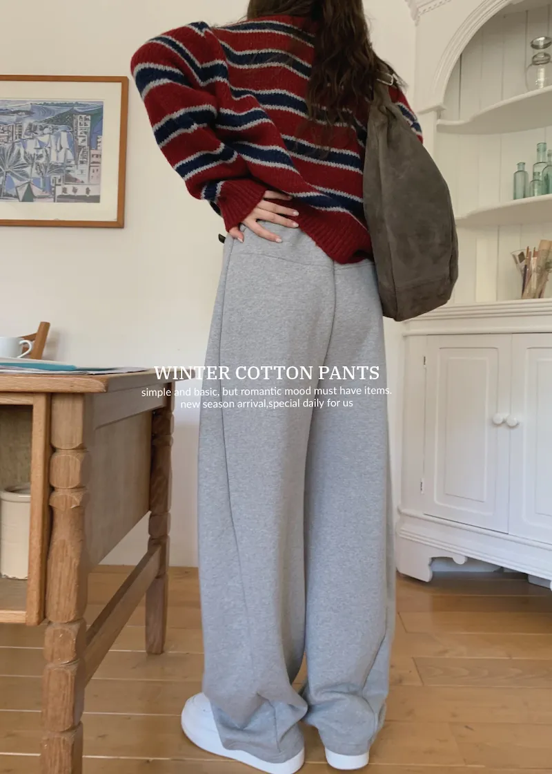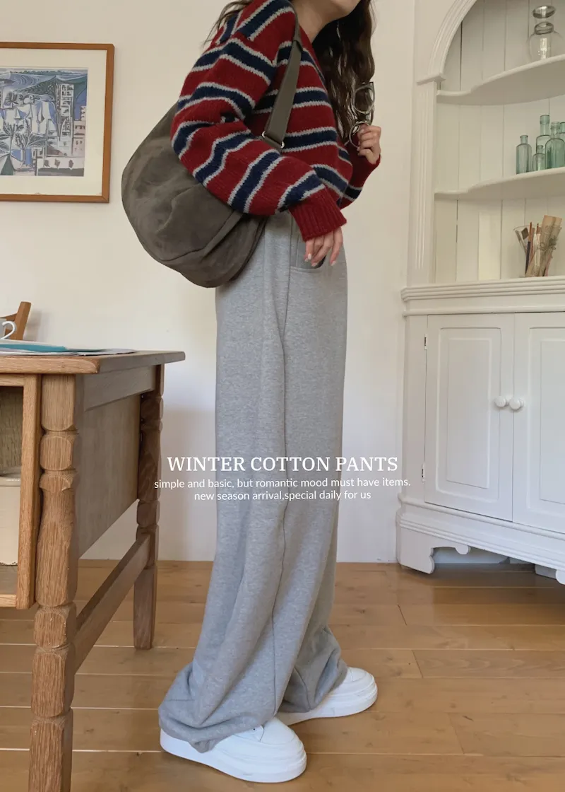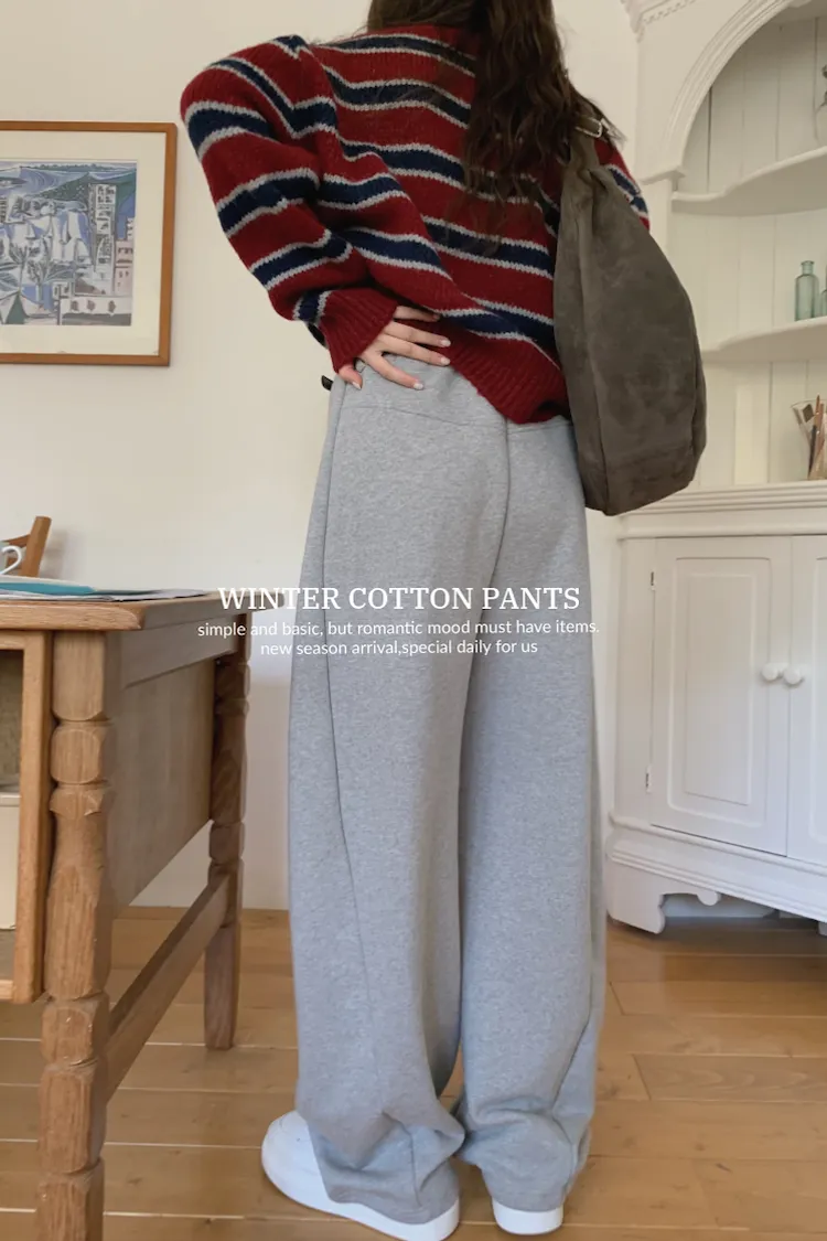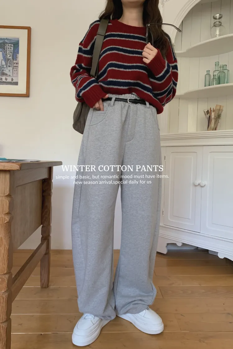就是我記得前陣子我也買過這種縮口的棉褲,然後也是偏厚,也偏寬的