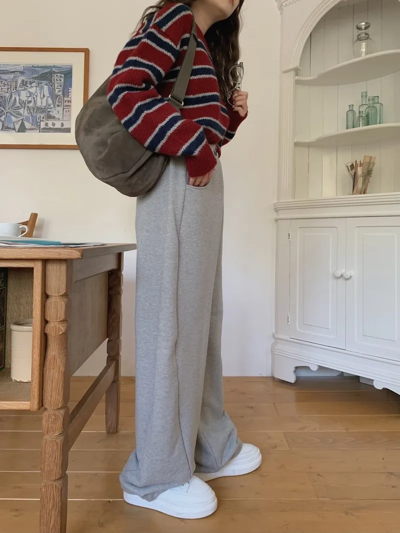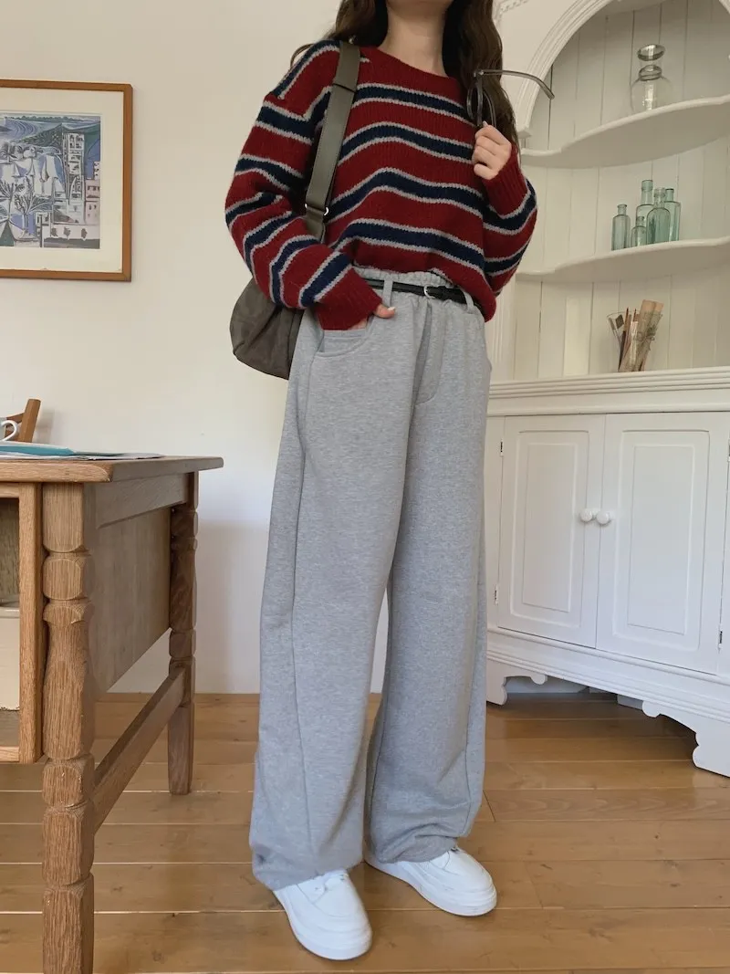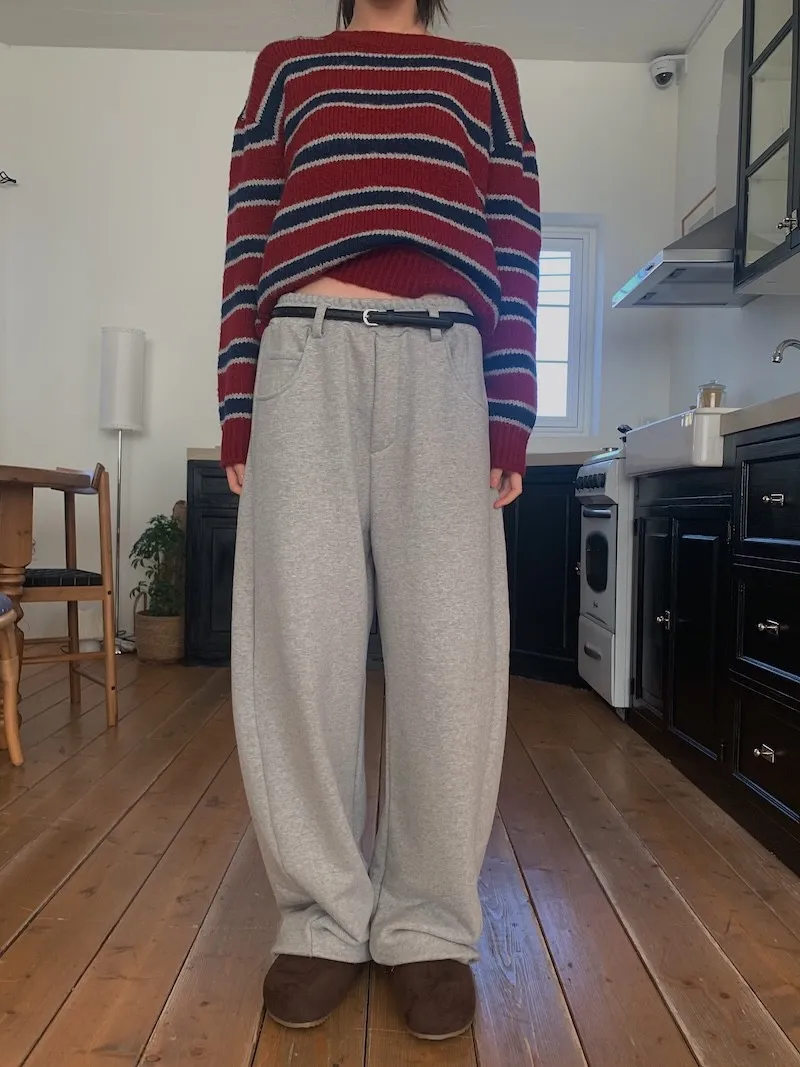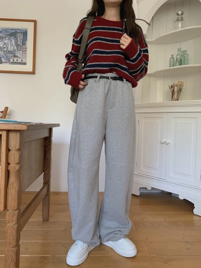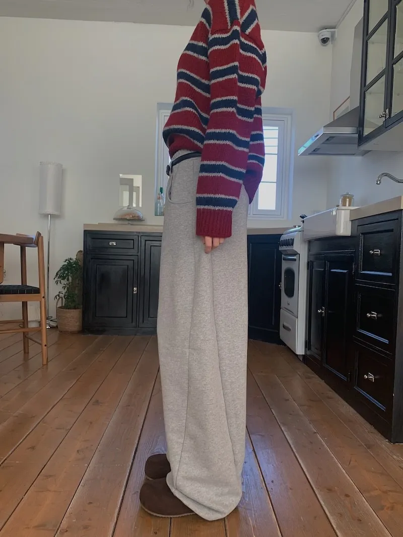 就是我記得前陣子我也買過這種縮口的棉褲,然後也是偏厚,也偏寬的