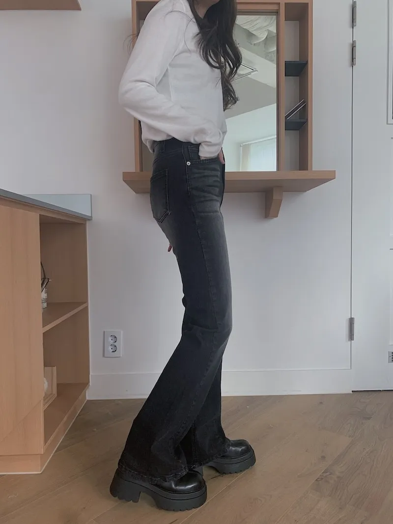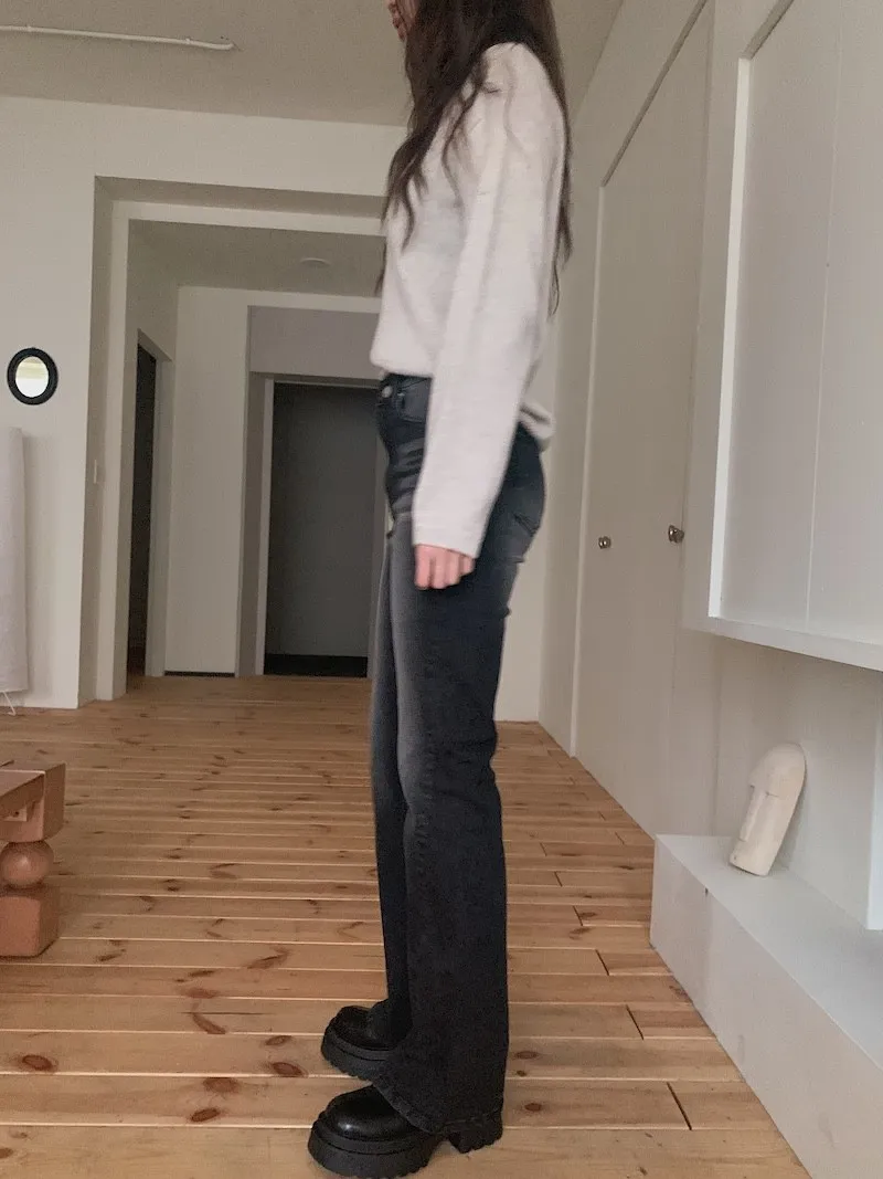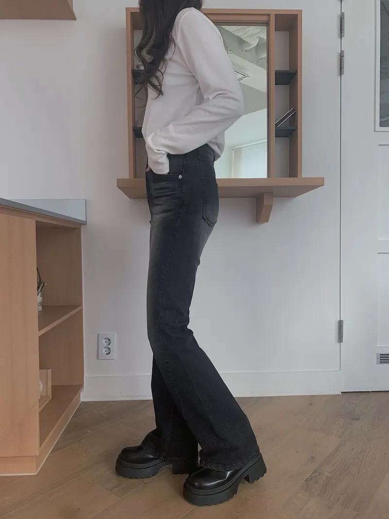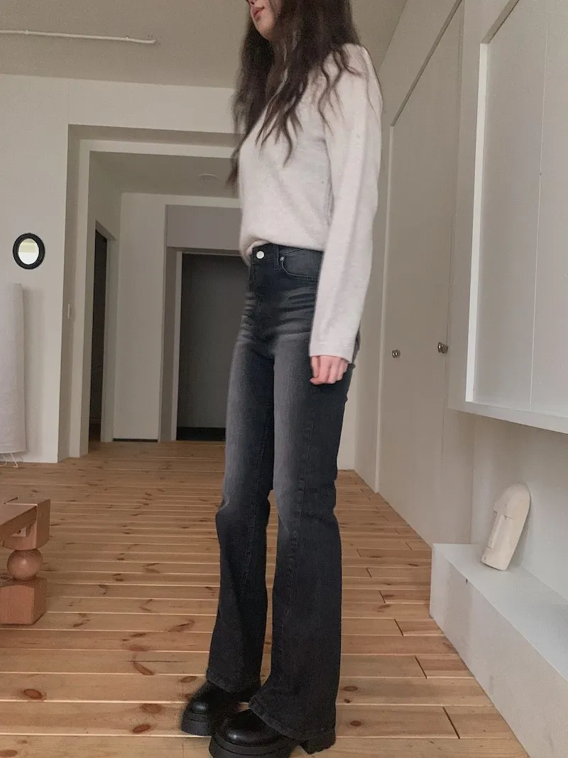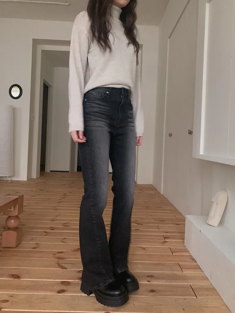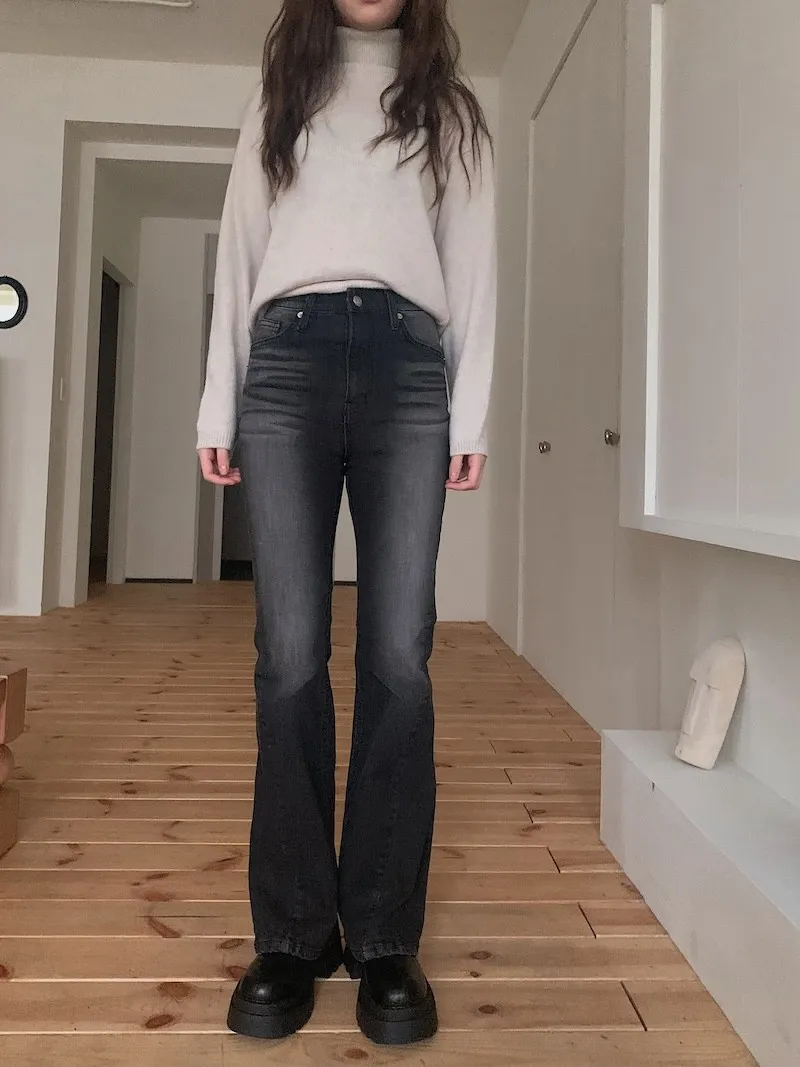 所以我每次都覺得,小個子穿我們家的喇叭褲更顯腿長