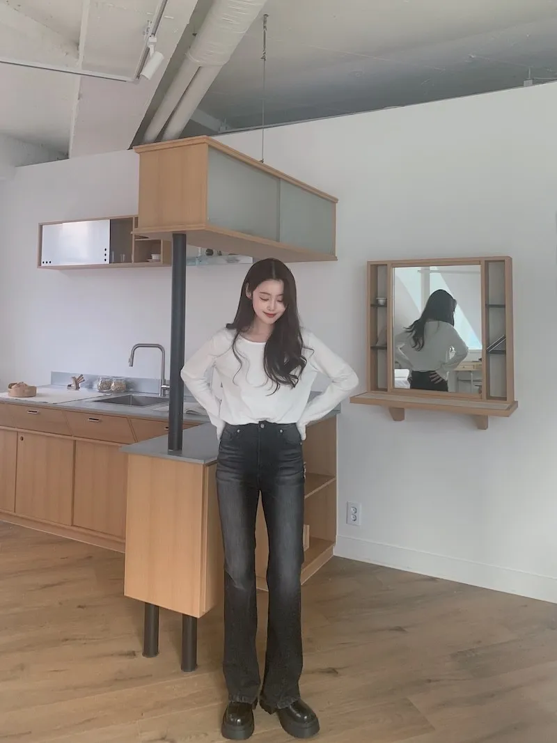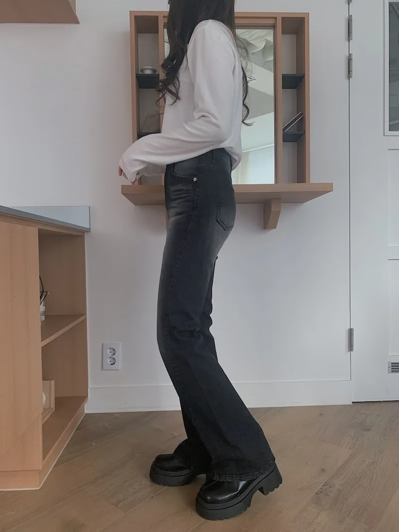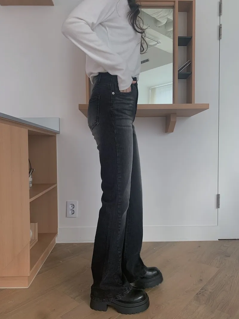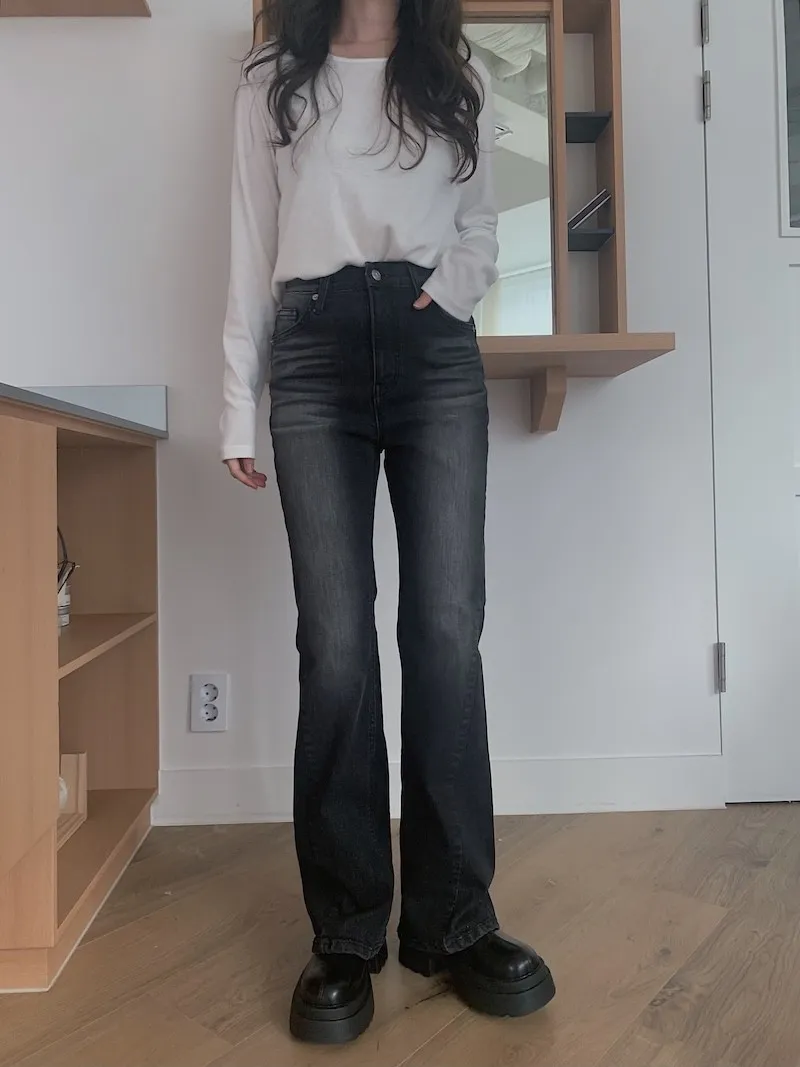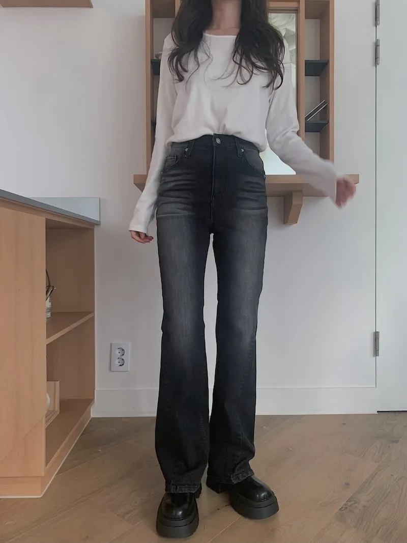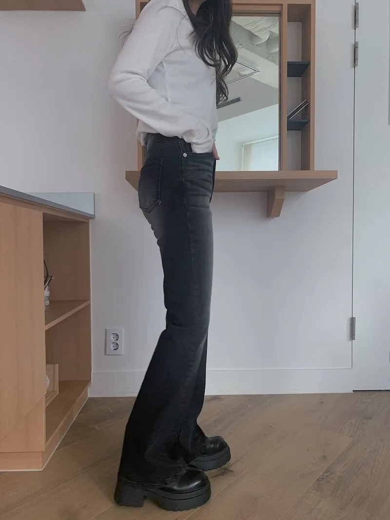 所以我每次都覺得,小個子穿我們家的喇叭褲更顯腿長