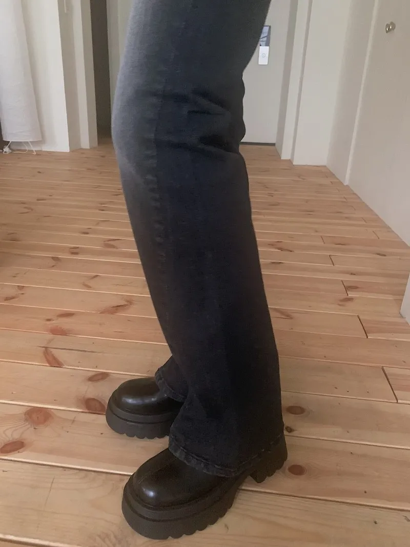 可以落地顯腿長但又不會踩到的:)