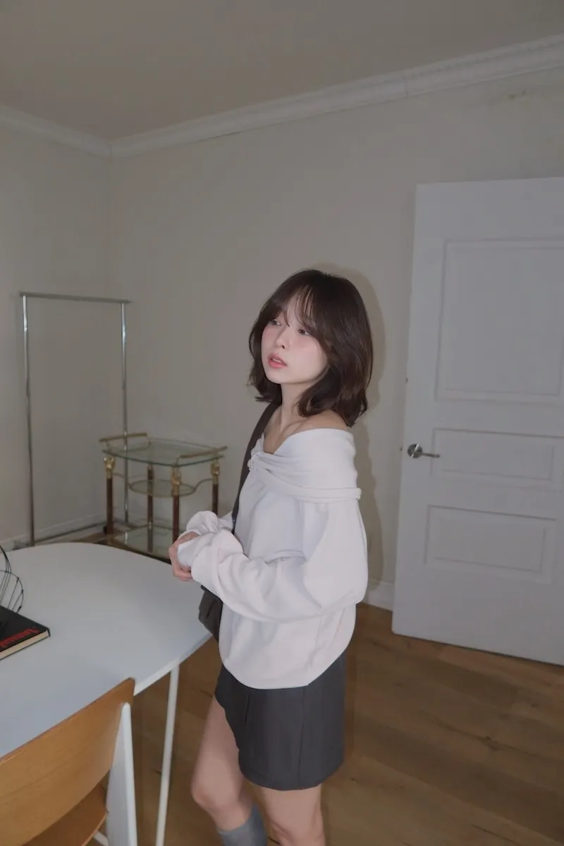 我覺得他是一件不太需要一直往下往上拉的一字領