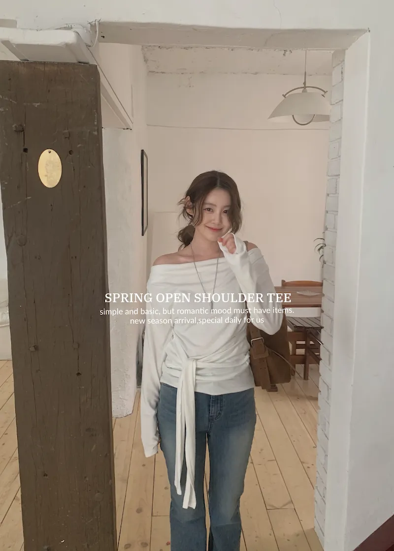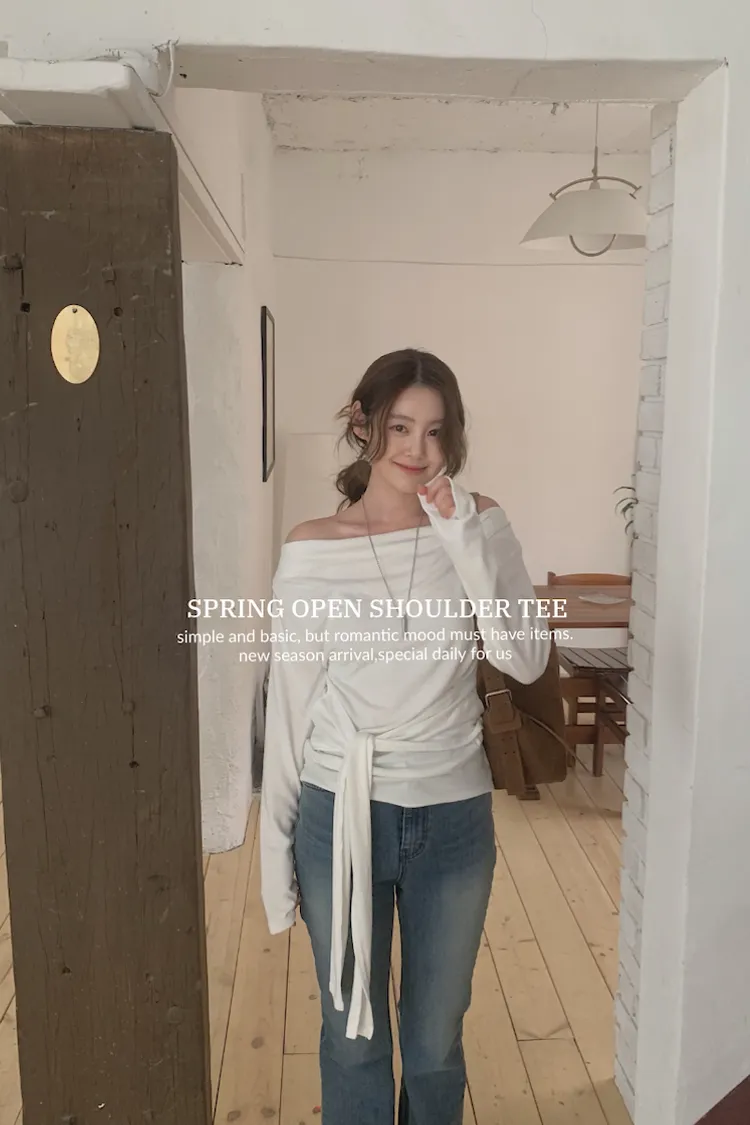 他也是算翻下來的布料去變成一字領的感覺